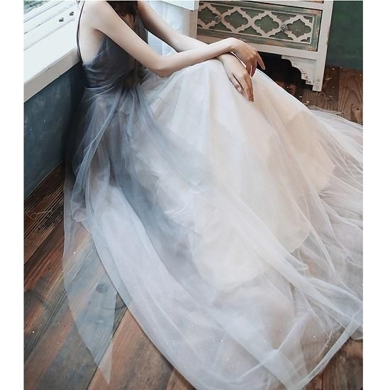 リゾートワンピース レディース マキシ丈 チュールスカート グラデーション キャミワンピ パーティドレス 背中見せ 大人かわいい 二次会 発表会 大人 上品 ウエスト イブニングドレス
