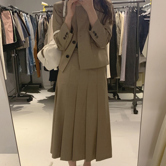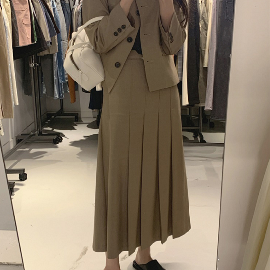 セットアップ ジャケット スカート プリーツ ロング丈 セットアップ 2点セット ジャケット 長袖 ボタン プリーツスカート ハイウエスト ロング丈 セットアップ ジャケット スカート プリーツ