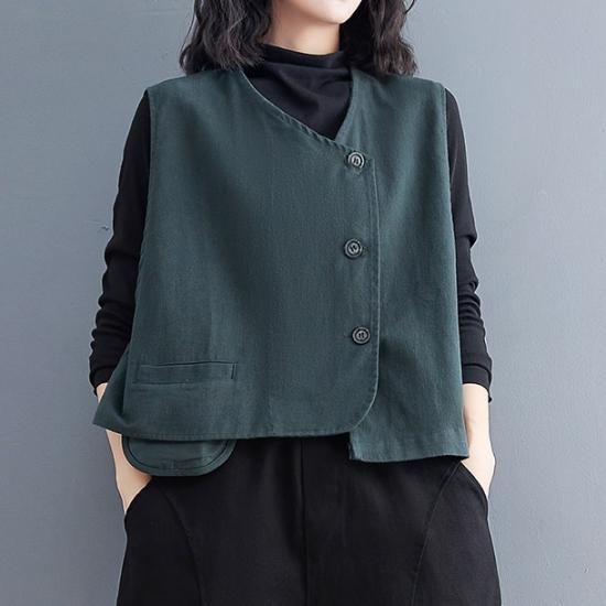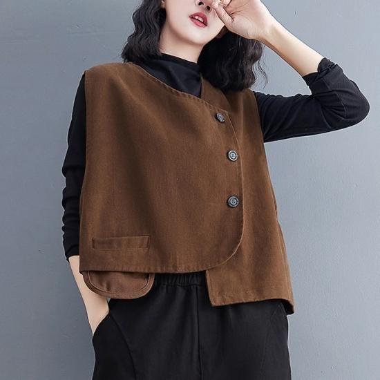ベスト レディース 韓国 ファッション アシンメトリー コットン 綿 ジレ ショート丈 ベスト 薄手 綿 おしゃれ アシメ トップス ショート丈 ベスト レディース レイヤード 大人カジュアル 春秋