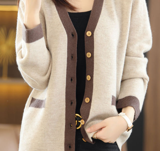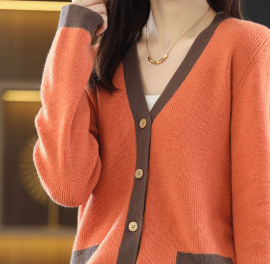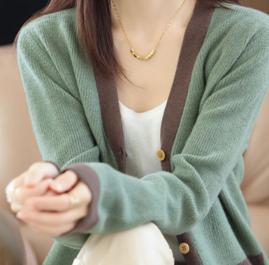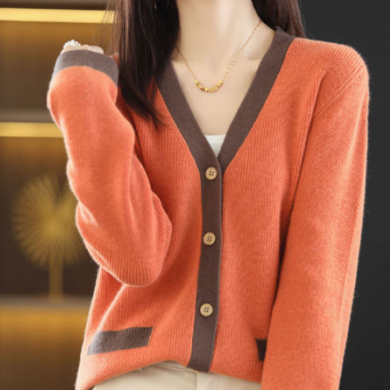 ニットカーディガン レディース カーディガン 羽織 ライトアウター Vネック コントラストカラー ボタン シンプル 無地 カシミヤ カジュアル お出掛け きれいめ 長袖 ニットカーディガン 羽織