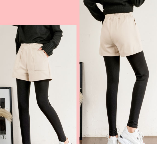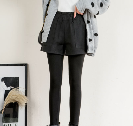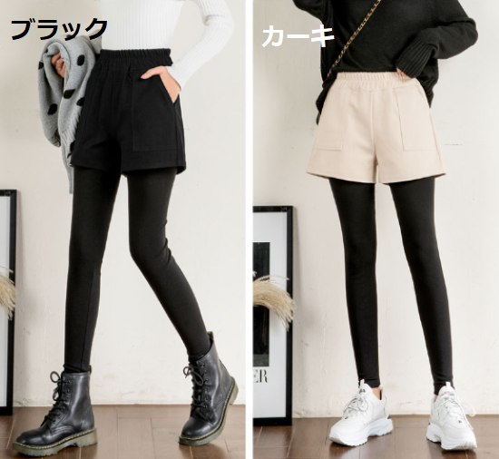 レギンスパンツ レディース レギンス ショートパンツ ボトムス 重ね着風 フェイクレイヤード レイヤードスタイル カジュアル お出かけ おしゃれ 秋冬 ハイウエスト レギンスパンツ レイヤード