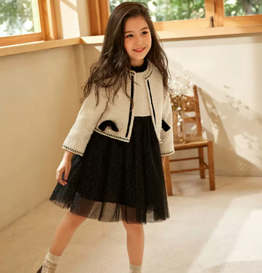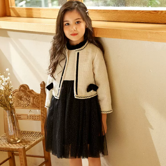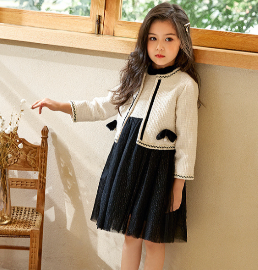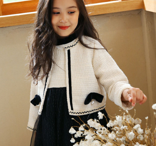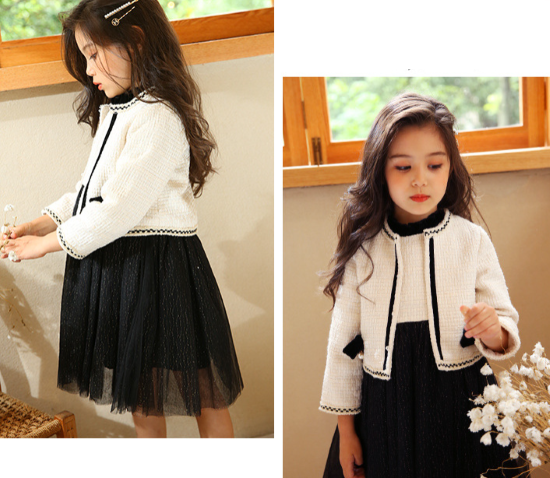 卒園式 子供服 ワンピース ジャケット ツーピース 2点セット ノーカラー リボン コントラストカラー バイカラー 長袖 膝丈スカート 女の子 キッズ ガールズ お呼ばれ フォーマル 入園式 可愛い