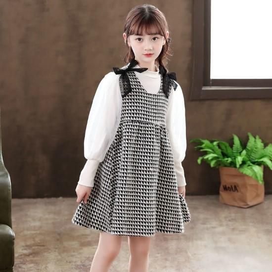 卒園式 子供服 ノースリーブワンピース インナー 2点セット ツーピース ワンピース リボン 女の子 キッズ ガールズ ボリューム袖 総柄 お呼ばれ 入園式 入学式 お出かけ 可愛い 発表会