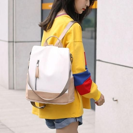 バッグ バックパック リュックサック ショルダーバッグ レディース バイカラー フェイクレザー エコレザー 肩掛け 防水 大容量 かわいい きれいめ 上品 大人 ユニセックス オフィスコーデ