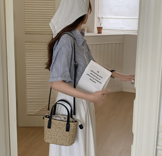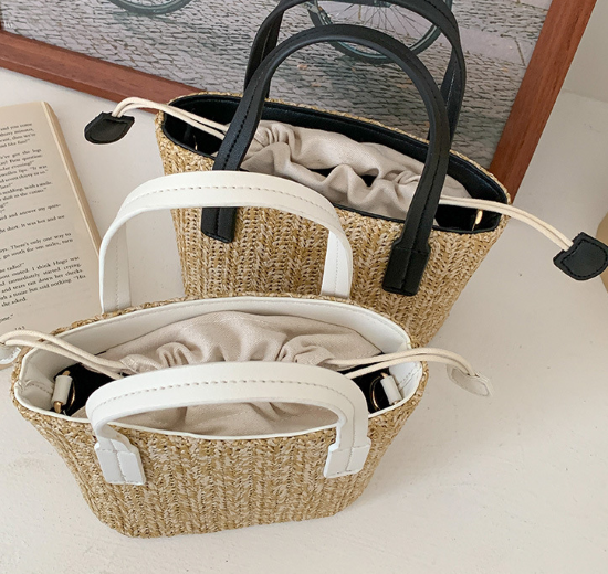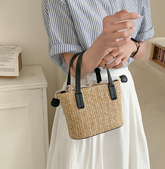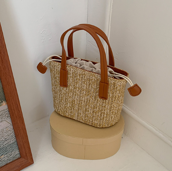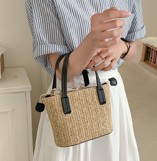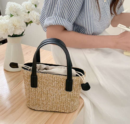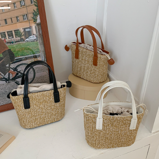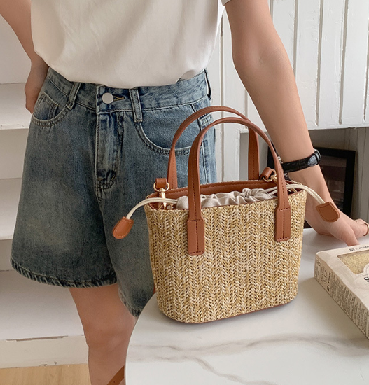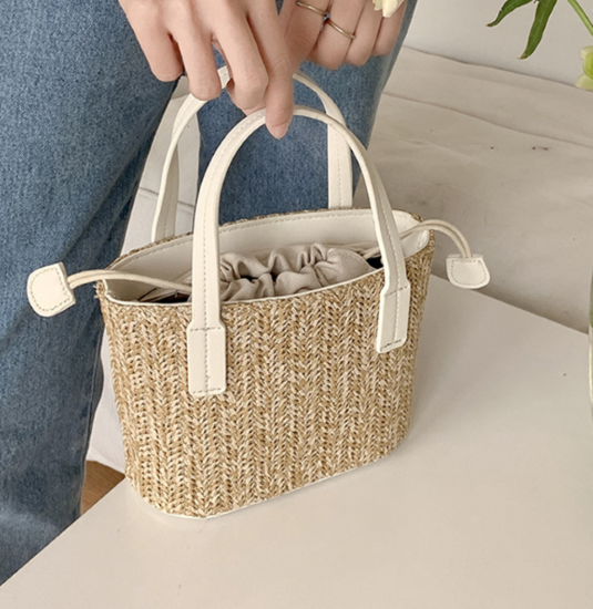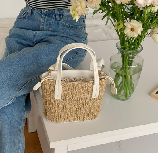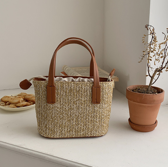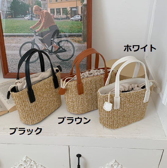 ハンドバッグ レディース カゴバッグ かごバッグ 鞄 かばん ミニバッグ コンパクト 小さめ 巾着 織バッグ ナチュラル シンプル 無地 ドローストリング カジュアル お出かけ おしゃれ 夏 リゾート