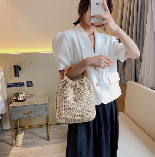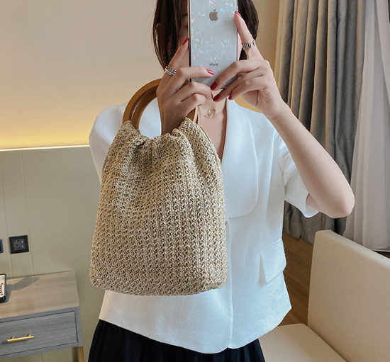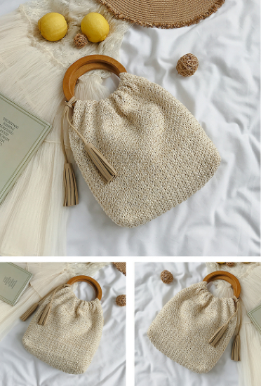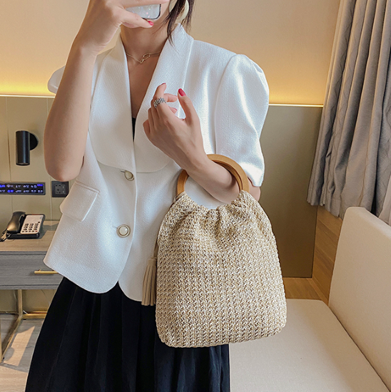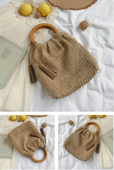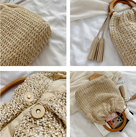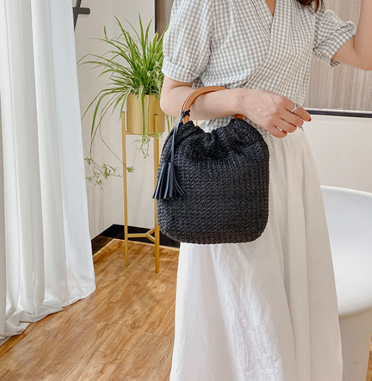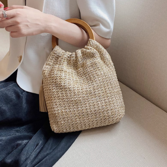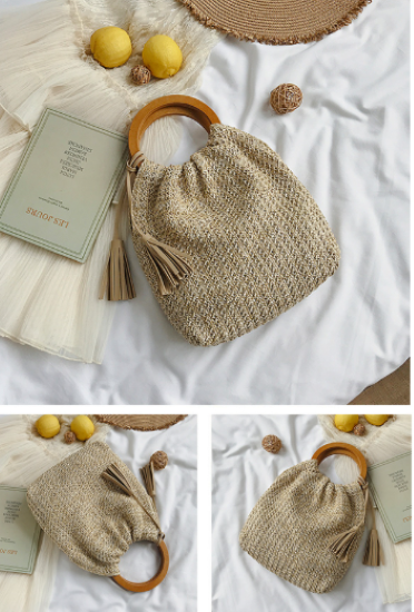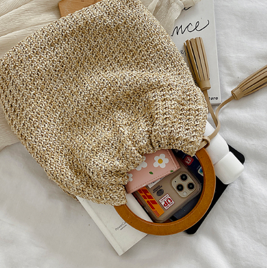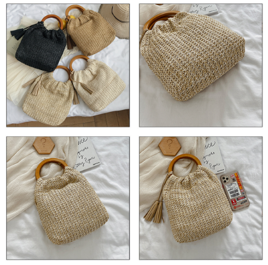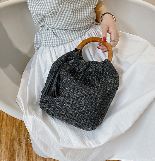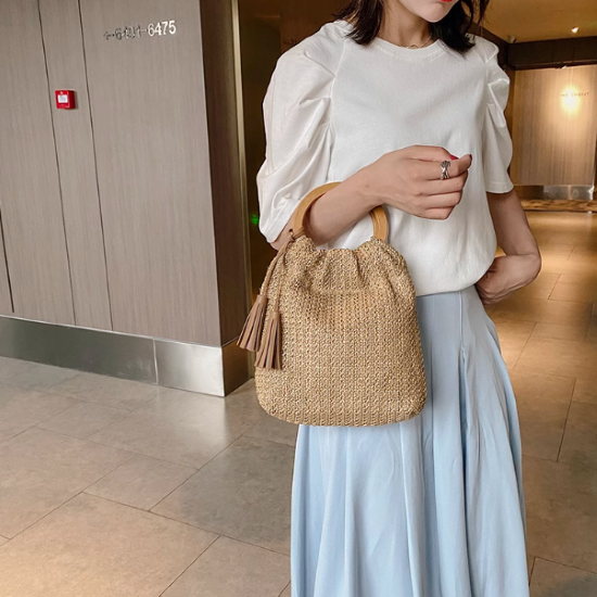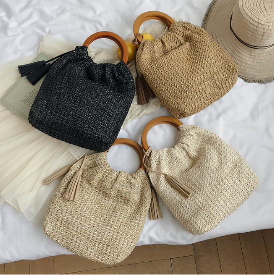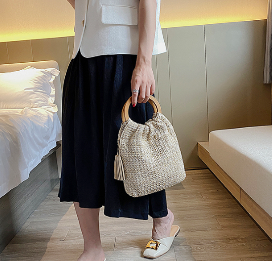 ハンドバッグ レディース 鞄 かばん サークルハンドル タッセル付き ソフト ストローバッグ 織バッグ カジュアル お出かけ おしゃれ シンプル 無地 夏 ハンドバッグ レディース かばん バッグ