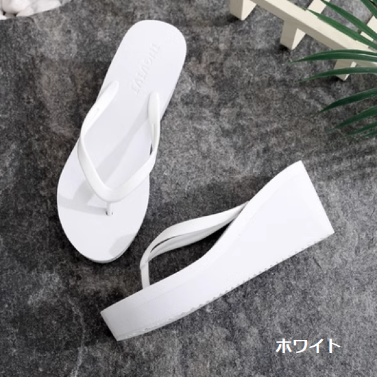 ウエッジソールサンダル レディース 靴 シューズ サンダル 厚底 トングサンダル ビーチサンダル シンプル 無地 ハイヒール 美脚 脚長 カジュアル お出かけ おしゃれ リゾート 夏 ウエッジソール