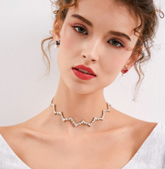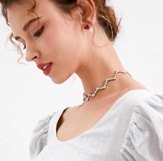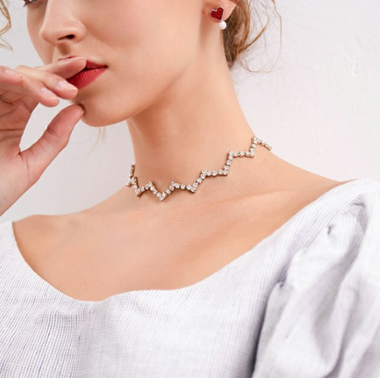 チョーカー レディース アクセサリー ネックレス ギザギザ型 ラインストーン ジュエリー ファッション きらきら ウエーブ きれいめ エレガント カジュアル おしゃれ ファッション チョーカー 女性