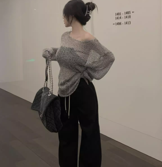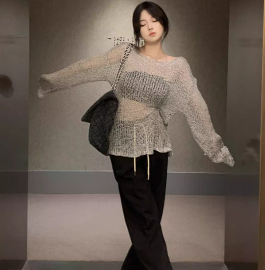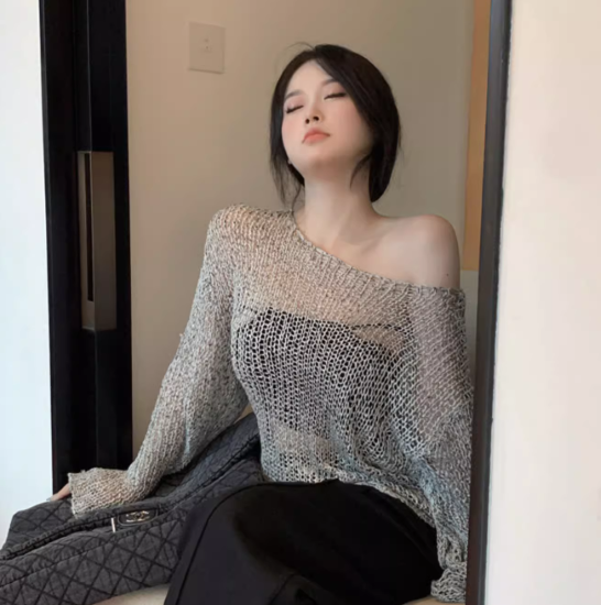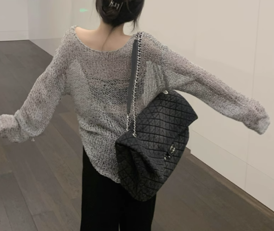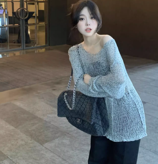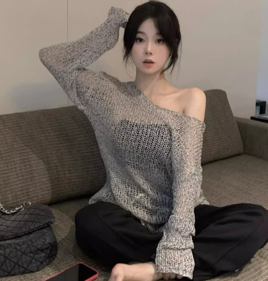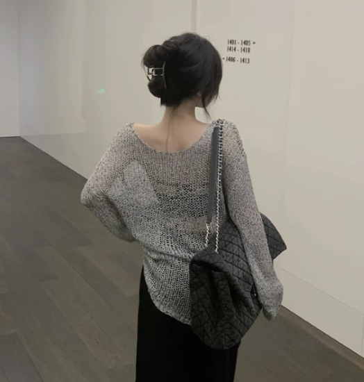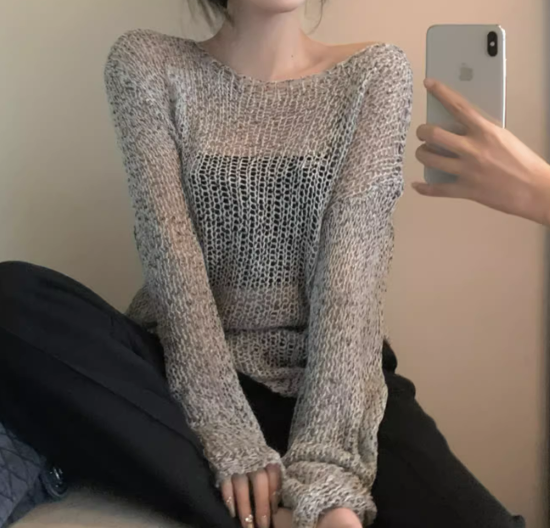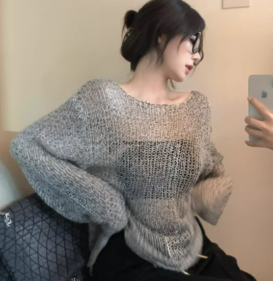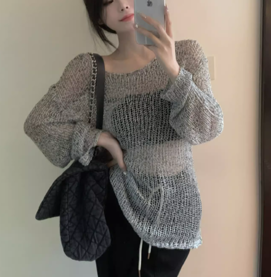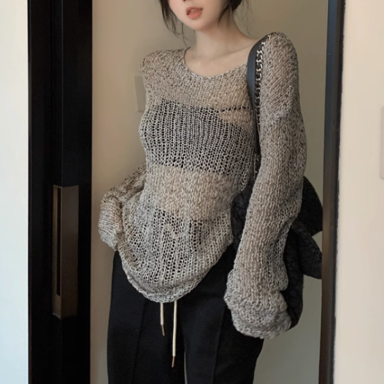サマーニット レディース サマーセーター トップス 長袖 ゆったり シースルー ルーズシルエット シンプル 無地 カジュアル お出かけ おしゃれ 日焼け対策 UV対策 プルオーバー ニット セーター