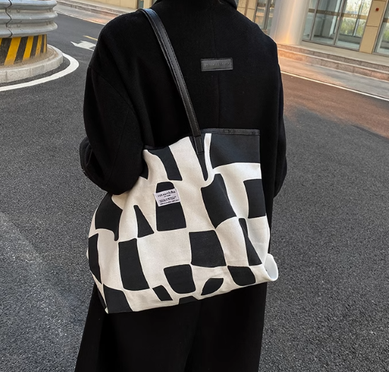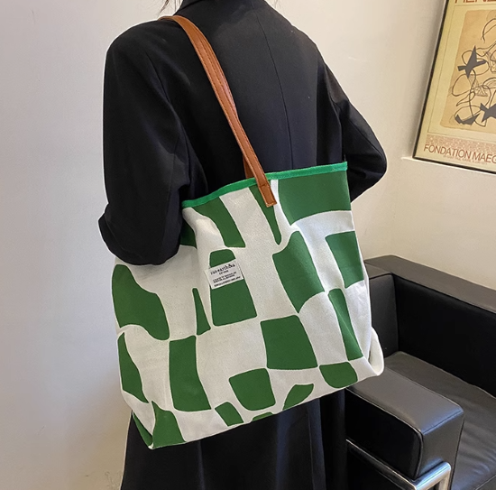 トートバッグ レディース バッグ 鞄 かばん 大容量 肩掛けバッグ キャンバスバッグ 通勤通学 学生 マザーズバッグ ママバッグ ランダムチェック柄 カジュアル お出かけ おしゃれ 大きめ 内ポケット