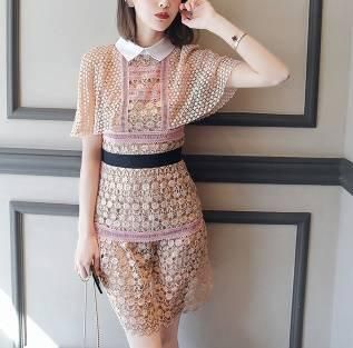 白襟 ベージュ 総レース シースルー オルチャンドレス プチプラパーティードレス お呼ばれワンピース オルチャンワンピース 可愛い フォーマル 演奏会 大きいサイズワンピース キャバ嬢ドレス