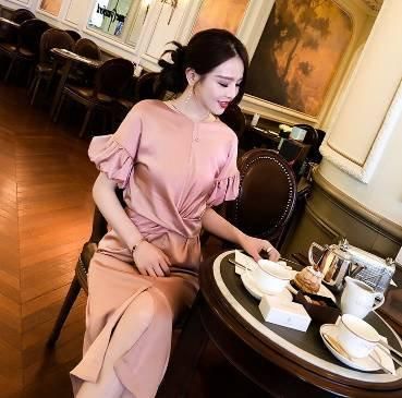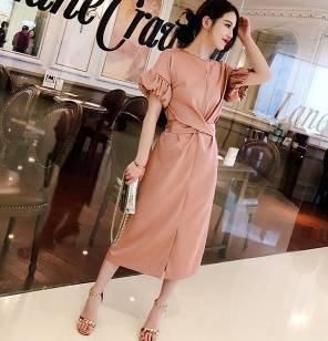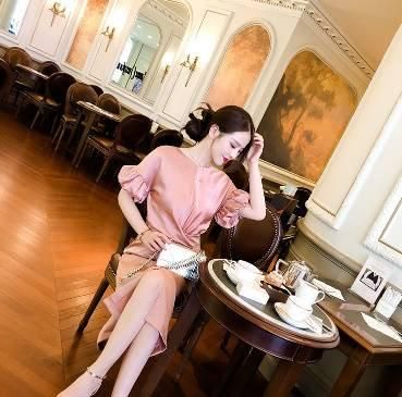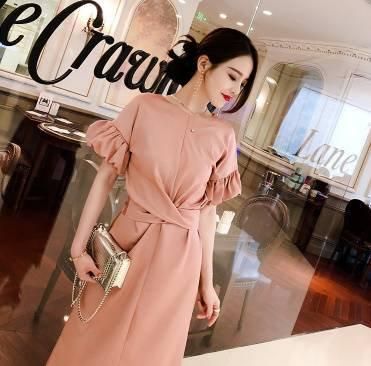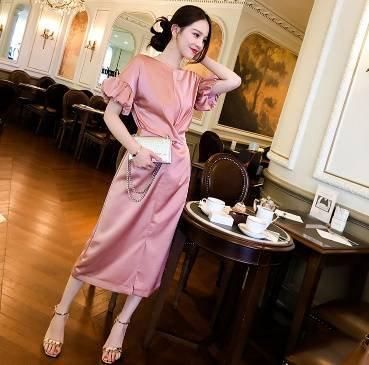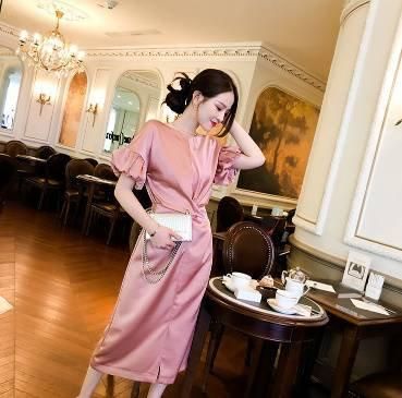上質サテン 光沢 ピンク クロスリボン オルチャン プチプラパーティードレス フォーマル 可愛い 結婚式 二次会 お呼ばれ 謝恩会 発表会 演奏会 大きいサイズワンピース キャバ嬢ドレス