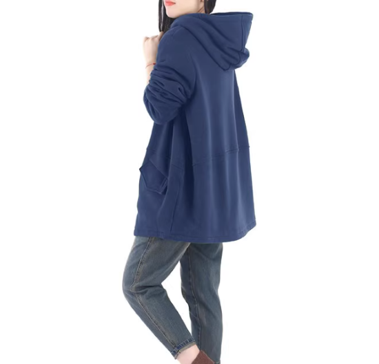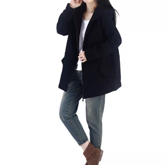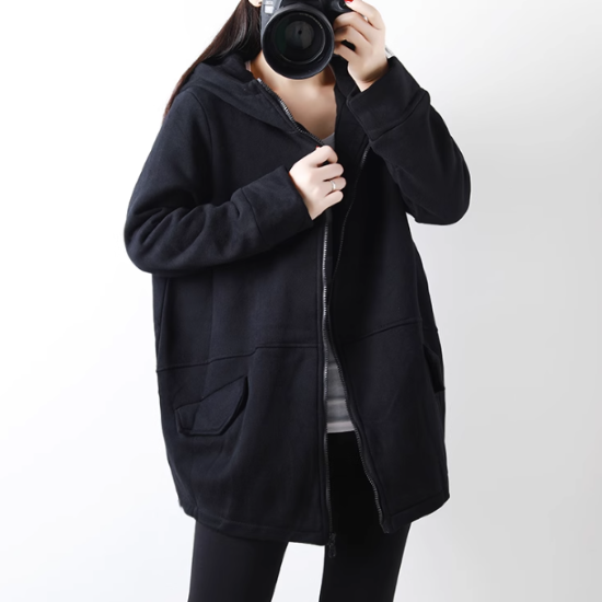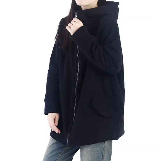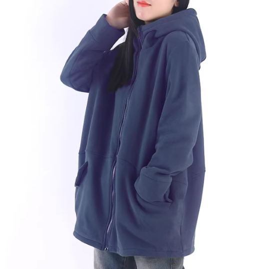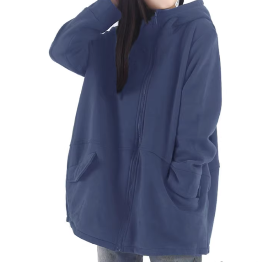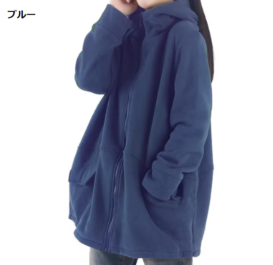 長袖パーカー レディース トップス 羽織 パーカー スウェット フード付き シンプル 無地 ゆったり ミドル丈 カーディガン カジュアル お出かけ おしゃれ コットン 綿 フロントジッパー ポケット