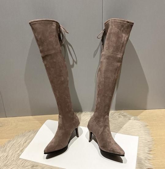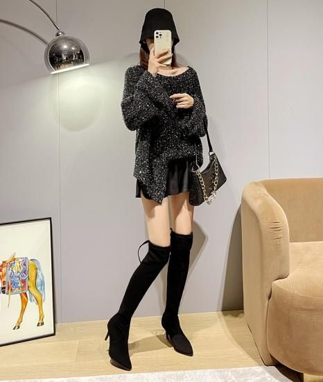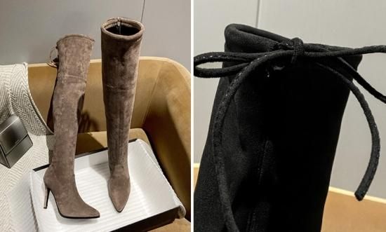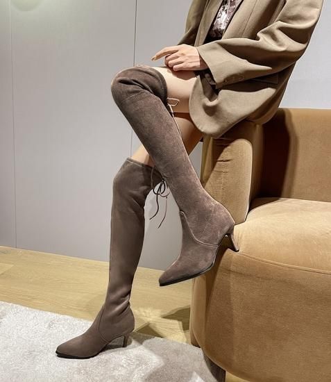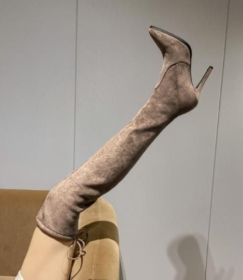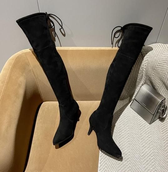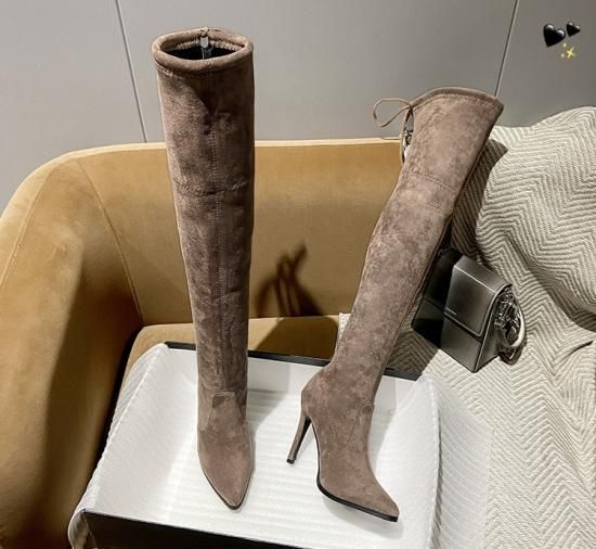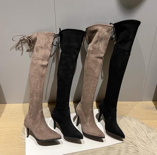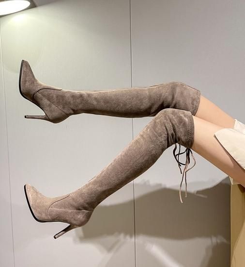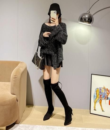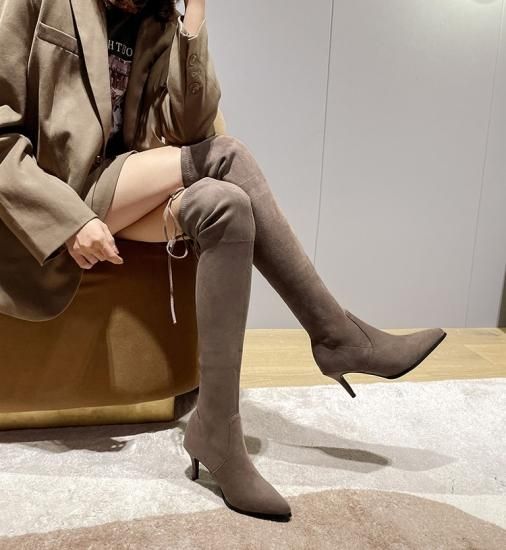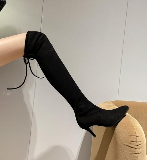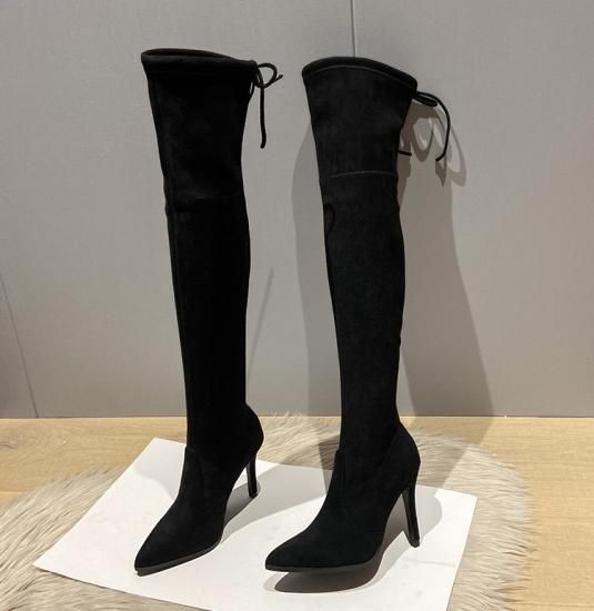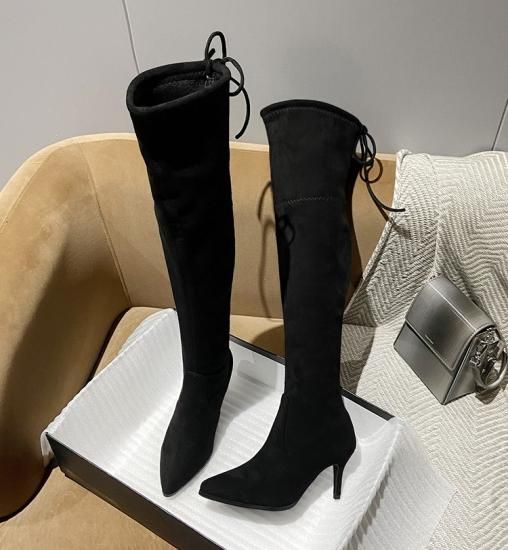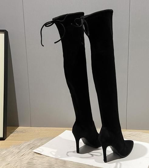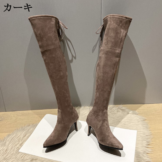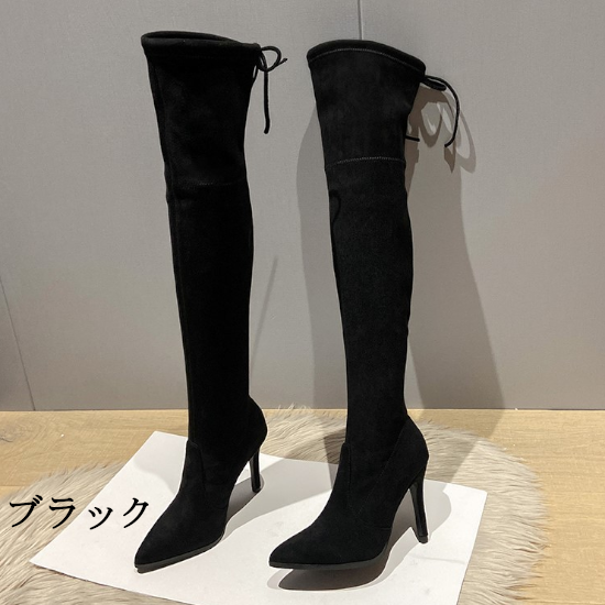ロングブーツ レディース 大きいサイズ ピンヒール ニーハイブーツ ロング丈 膝上 履き口 ゆったり 無地 シンプル 美脚 通勤 デート 女子会 お出かけ 休日 10代 20代 30代 40代 秋冬
