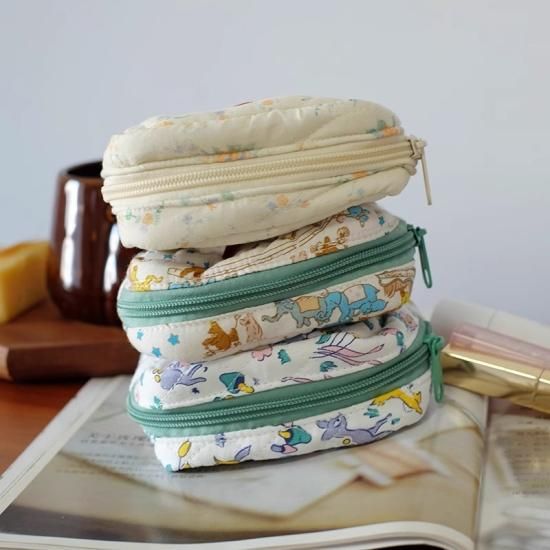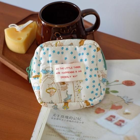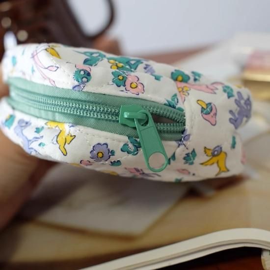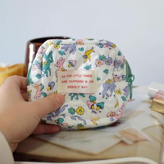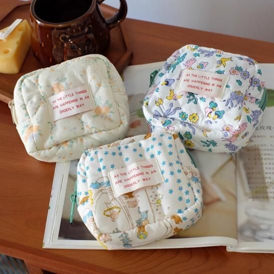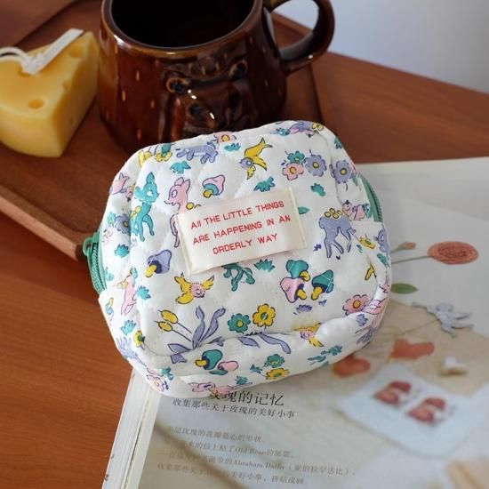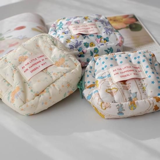 ポーチ レディース キルティング ミニポーチ スクエアポーチ レトロ プリント メルヘン コットンポーチ メイク 文具 収納 sweet 花柄 フラワープリント かわいい ガーリー おしゃれ