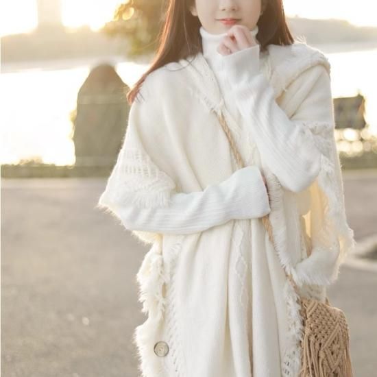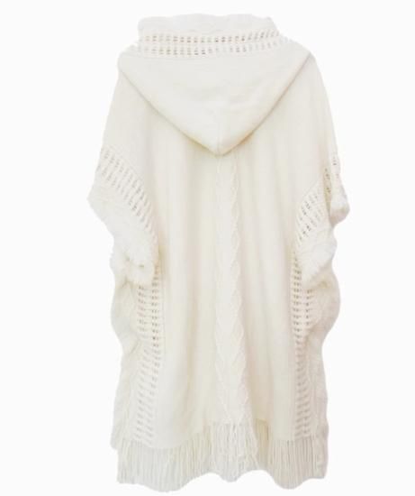 ポンチョ レディース マント ショール フード付き ニット ボヘミアン エスニック フリンジ ケープコート 羽織り カーディガン ミディアム丈 かわいい ガーリー カジュアル あたたか おしゃれ