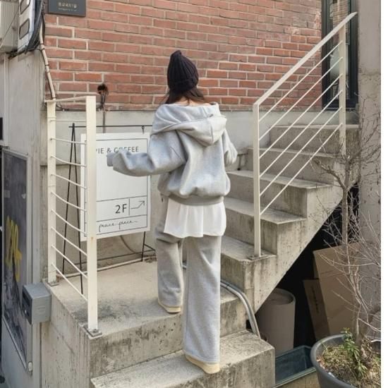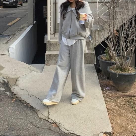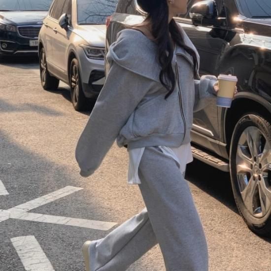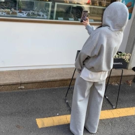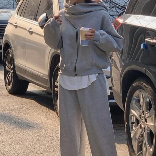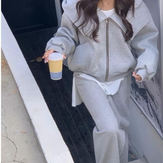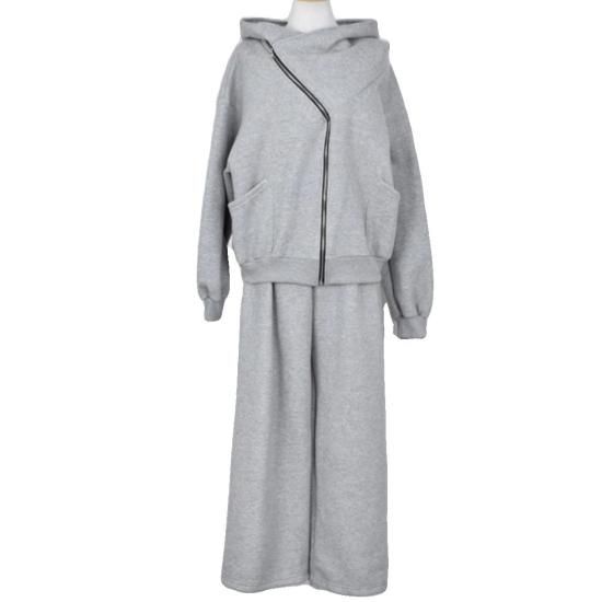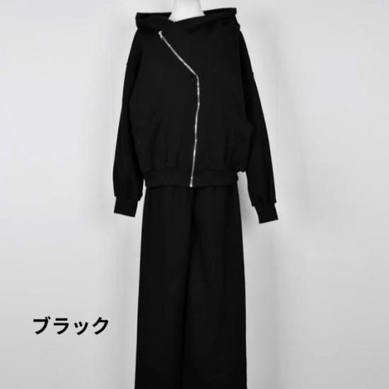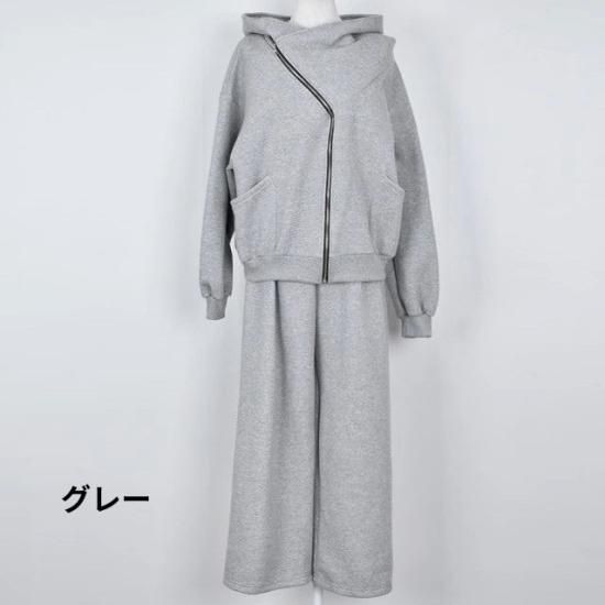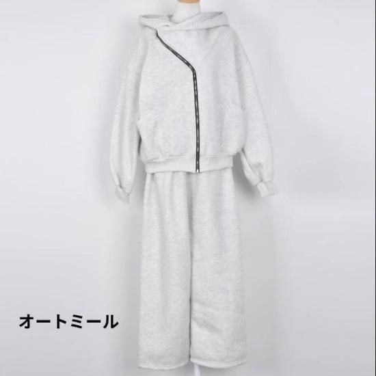 セットアップ レディース スウェット フード付き パーカー 2way フルジップ スウェットパンツ ワイドパンツ ウエストゴム 上下セット スウェットセット ゆったり カジュアル スポーツ おしゃれ