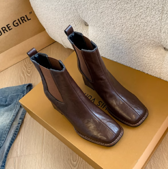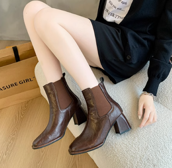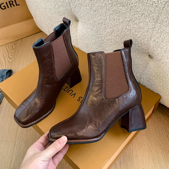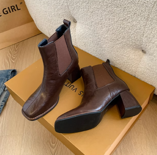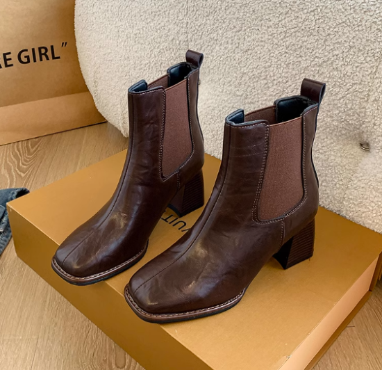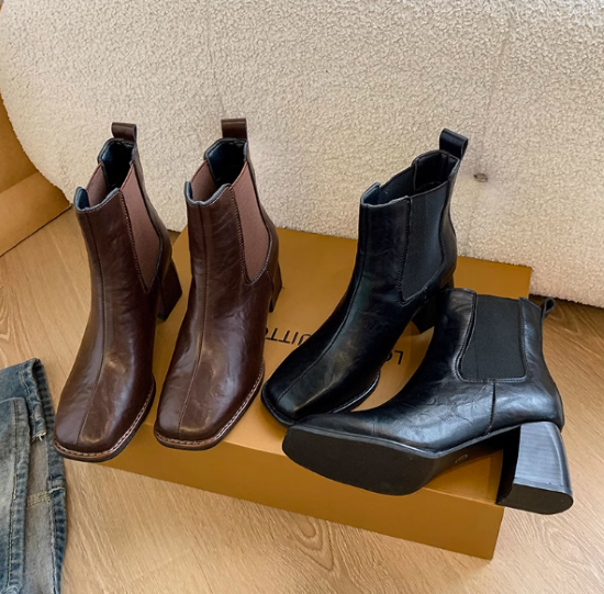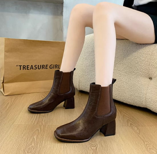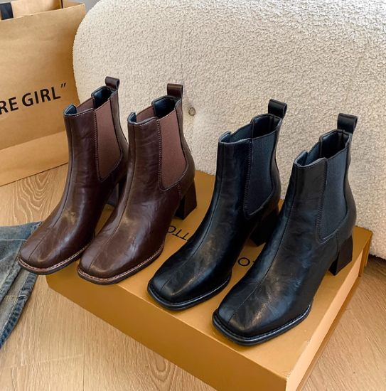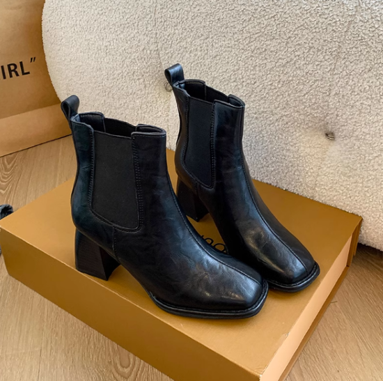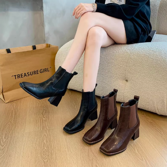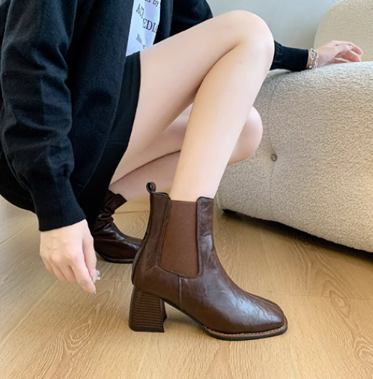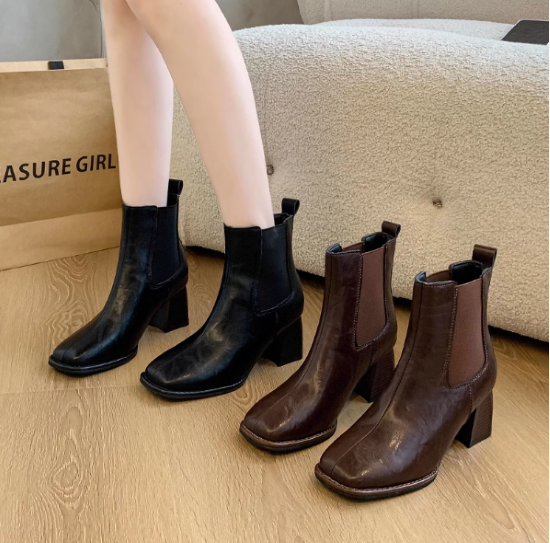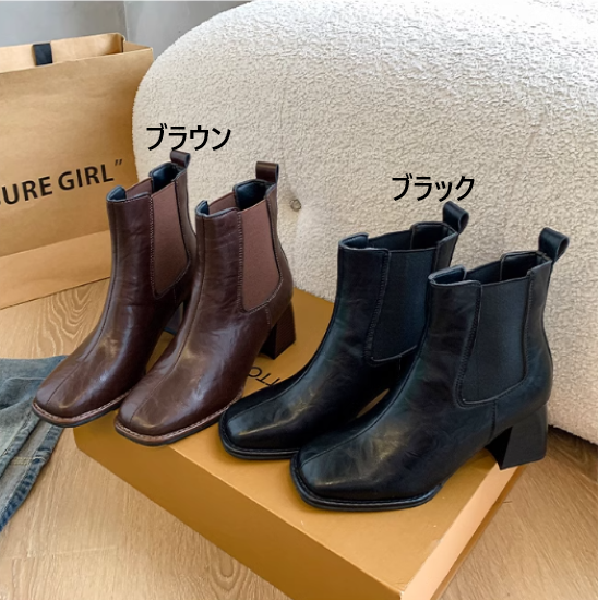 ショートブーツ レディース 靴 シューズ アンクルブーツ サイドゴア 太ヒール チャンキーヒール 美脚 脚長 スクエアトゥ シンプル 無地 きれいめ エレガント カジュアル お出かけ おしゃれ 女性