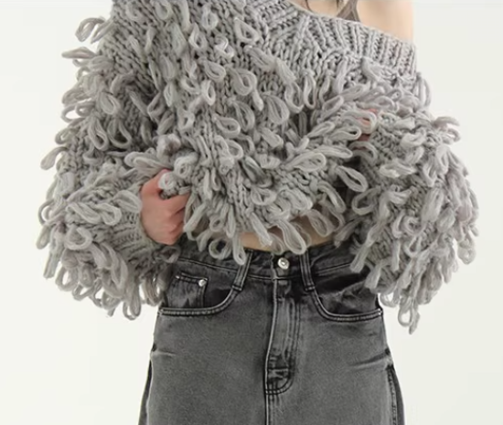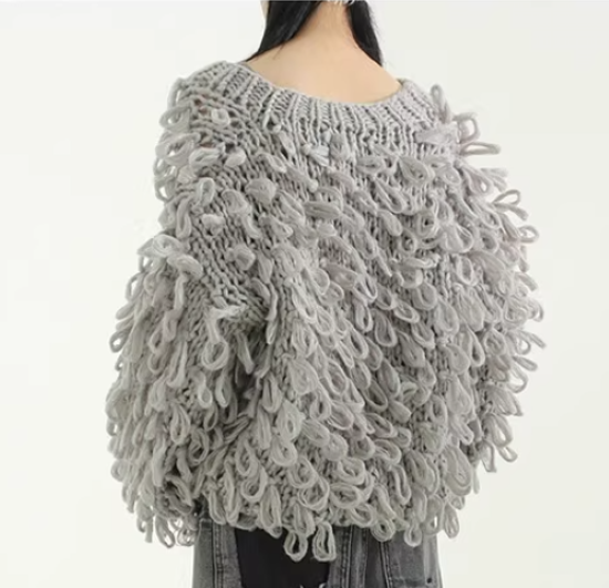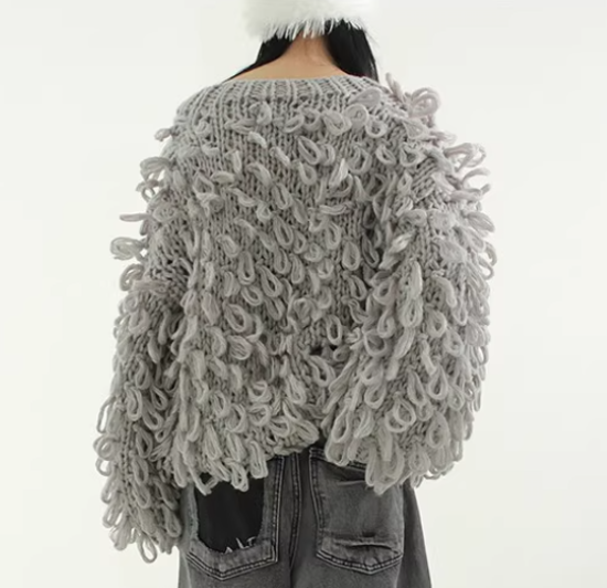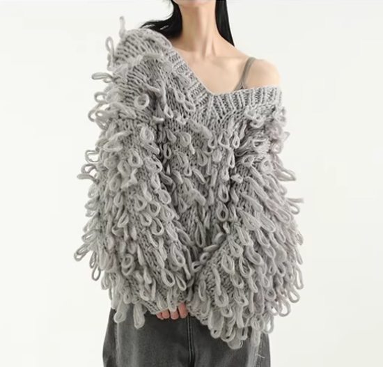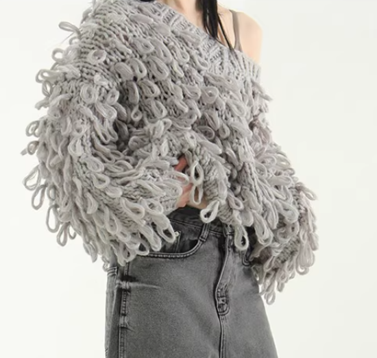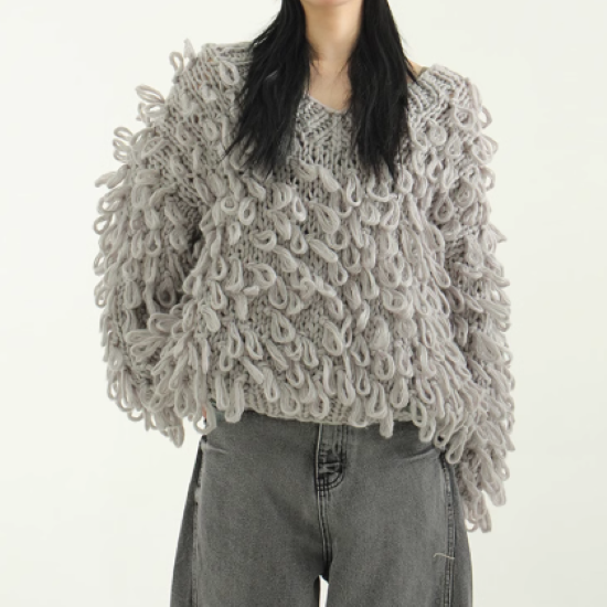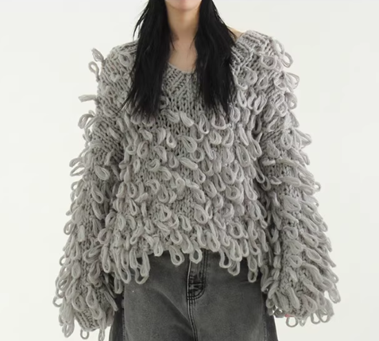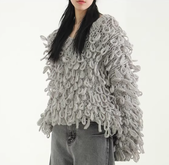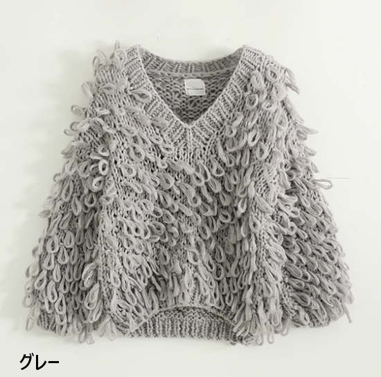 ニットセーター レディース トップス プルオーバー ニット セーター 個性的 長袖 立体的 ループデザイン ボリューム Vネック ゆったり ルーズ カジュアル お出かけ おしゃれ 秋冬 ファッション