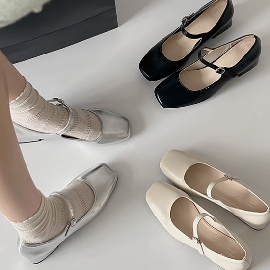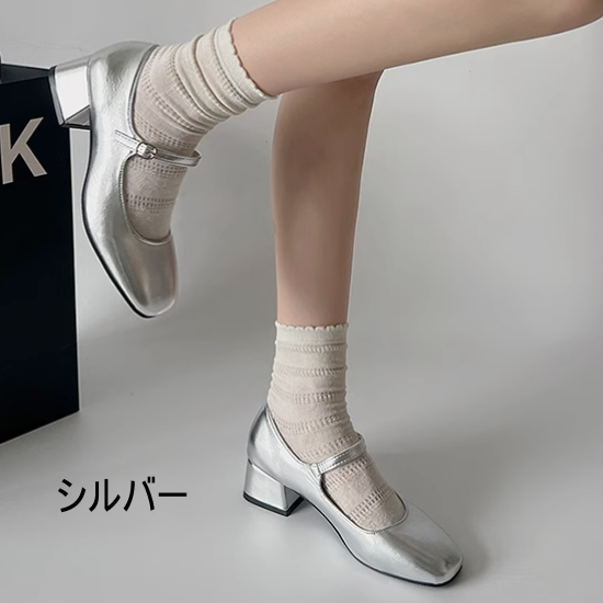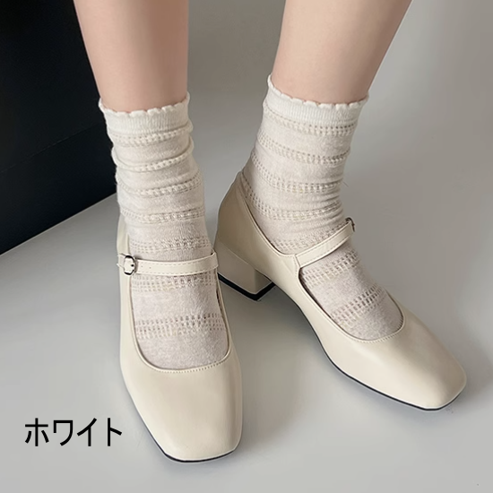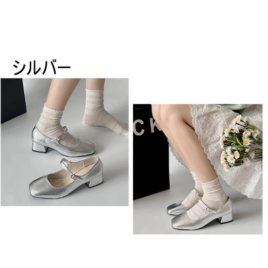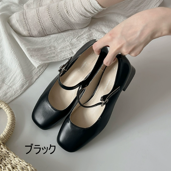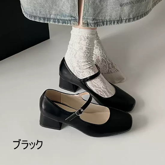 レザーシューズ レディースファッション チャンキーヒール スクエアトゥ ベルト付 ベーシック 高級感 大人可愛い お洒落 オフィススタイル カジュアル モード系 華麗 上品 韓国風 20代 30代