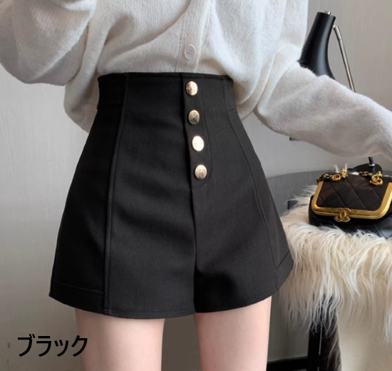 ショートパンツ レディース ボトムス ハイウエスト ズボン ショート丈 ゴールドボタン フレアシルエット Aライン カジュアル お出かけ おしゃれ きれいめ エレガント スタイリッシュ 女性 ショーツ