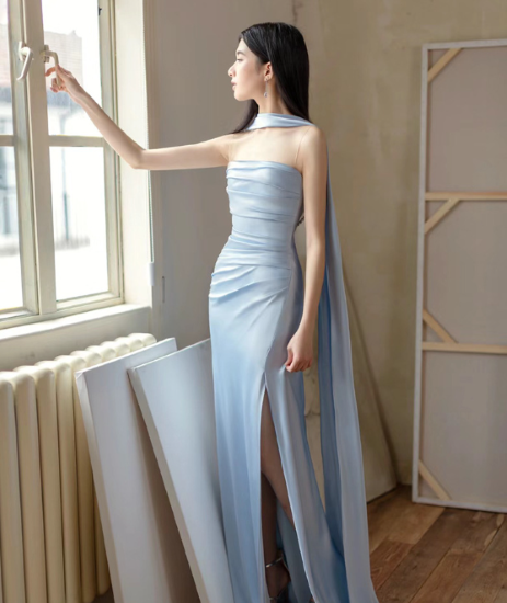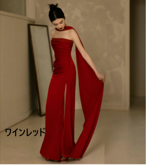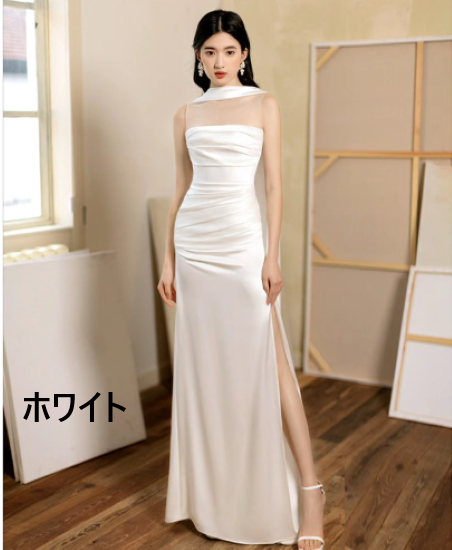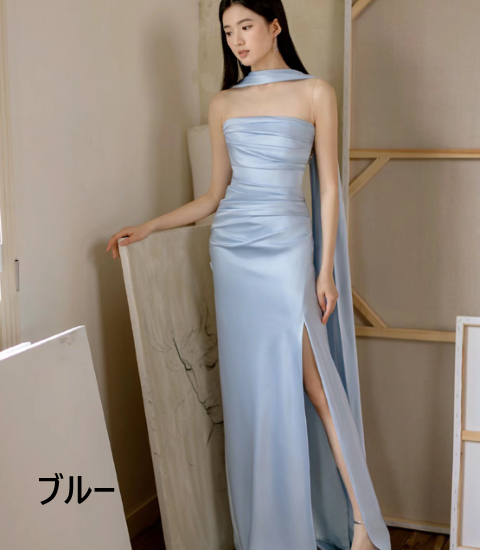 演奏会ドレス レディース 結婚式ドレス パーティードレス ロングドレス ワンピースドレス チューブトップ スリット スレンダー 大人っぽい 上品 シンプル 無地 きれいめ エレガント お呼ばれ 女性