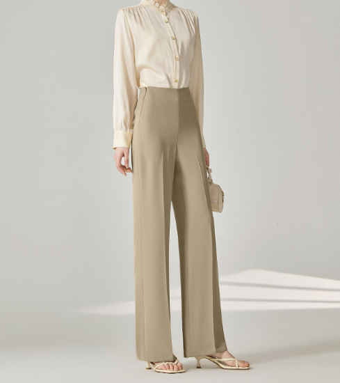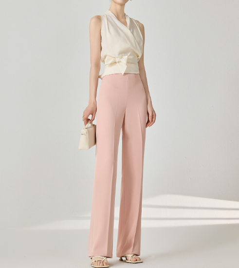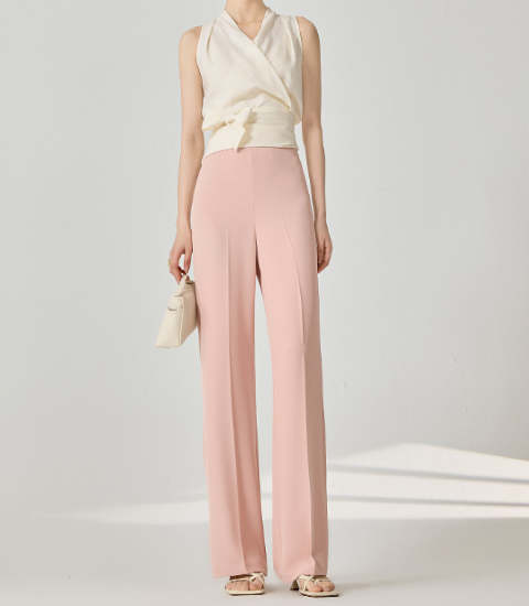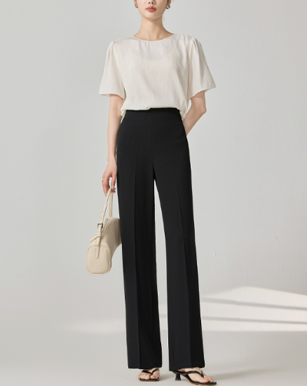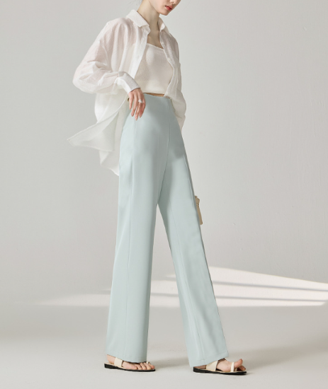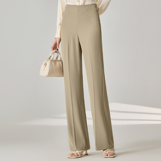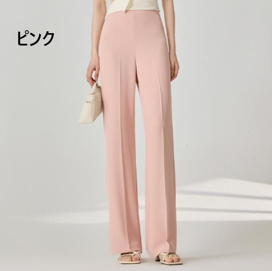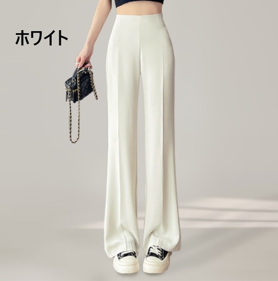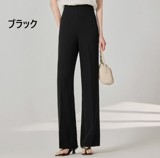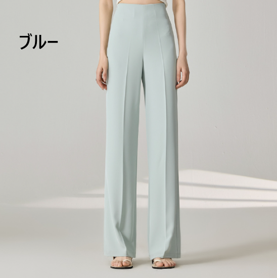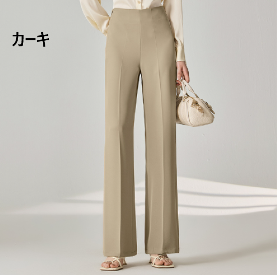 ロングパンツ レディース ボトムス 長ズボン ストレートレッグ シンプル 無地 センターライン ハイウエスト フレアパンツ ジッパー開閉 カジュアル きれいめ お出かけ おしゃれ 上品 ファッション