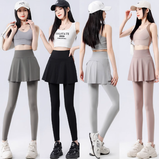 フェイクツーピース レディースファッション ボトム ハイウエストスカート ミニスカート レギンス スリムフィット 体型カバー ベーシックカラー 綺麗 上品 シンプル 大人可愛い お洒落 韓国風 20代