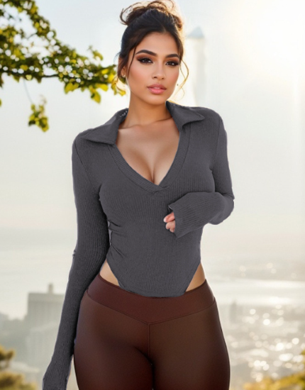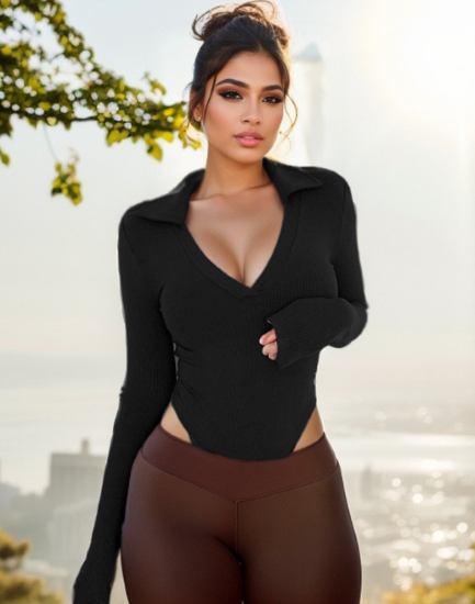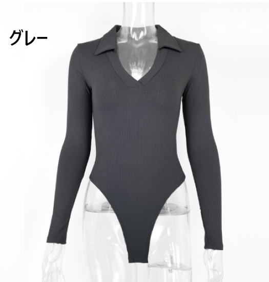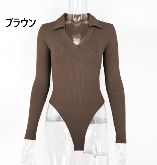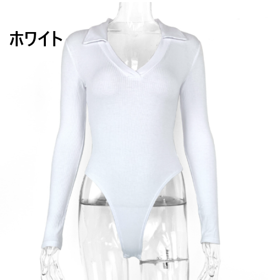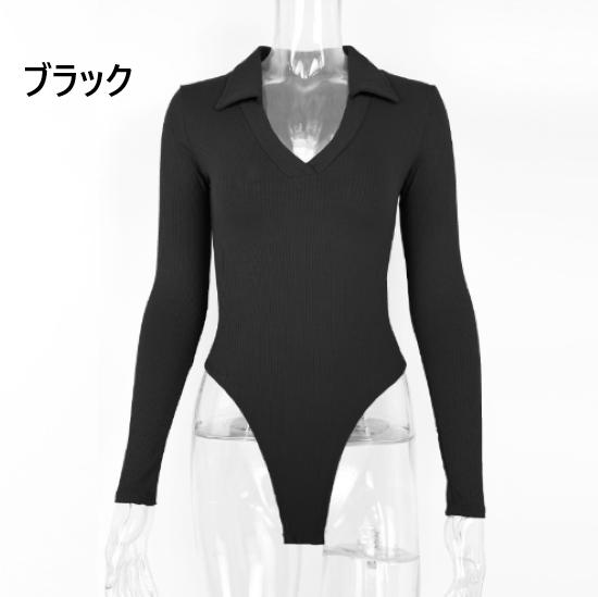 長袖カットソー レディース トップス ボディースーツ Vネック 襟あり ポロ襟 シンプル 無地 リブ カジュアル お出かけ おしゃれ ポロシャツ スリムフィット 女性 ファッション デイリー 長袖