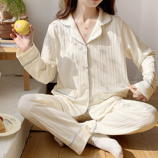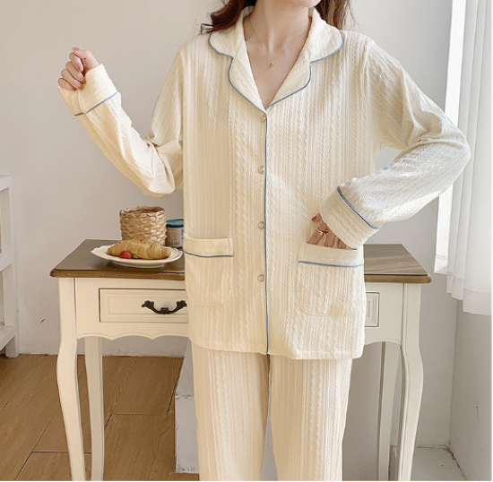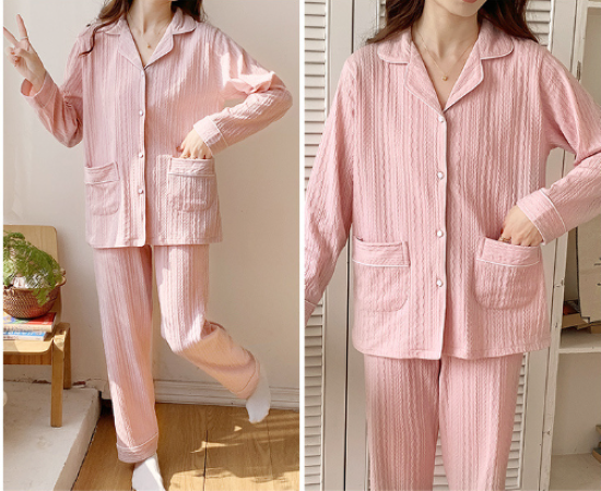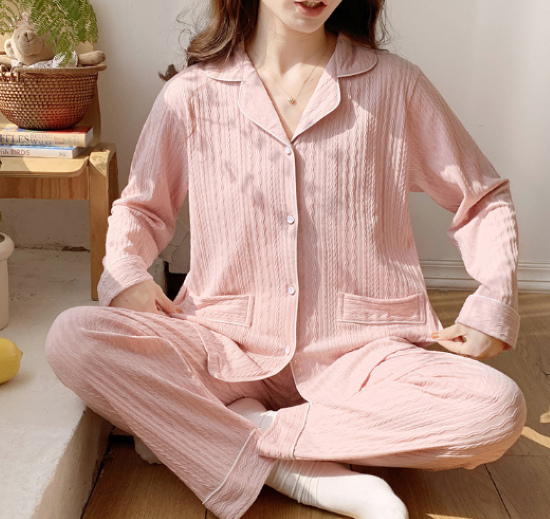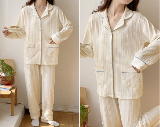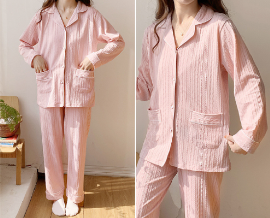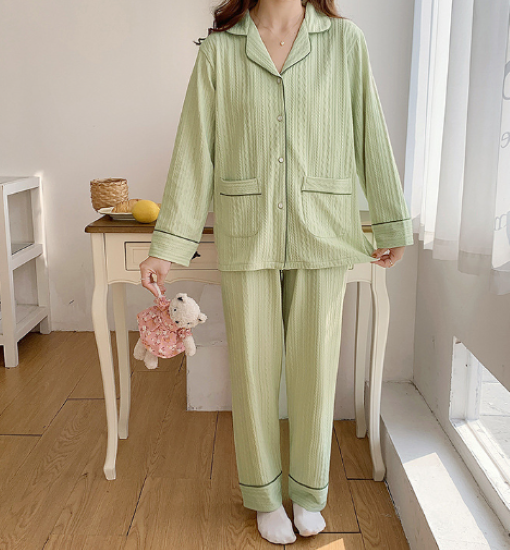 ルームウェア レディース パジャマ 上下セット セットアップ 長袖 ロングパンツ フロントボタン 襟あり ポケット リラックス シンプル 無地 お泊り おうち服 ホームウェア 室内着 部屋着 女性