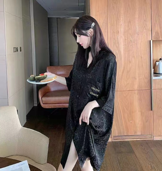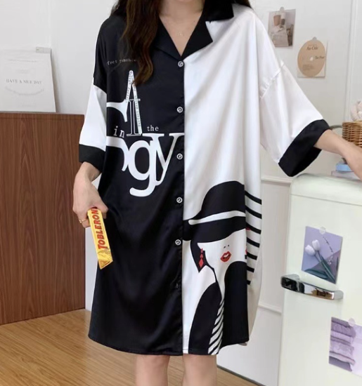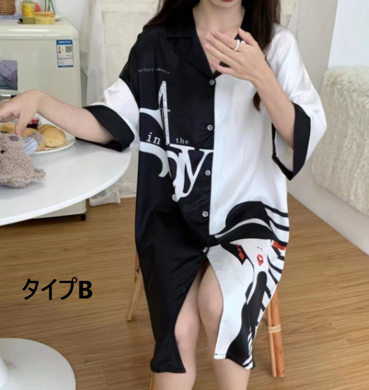 ルームウェア レディース ルームワンピース シャツワンピース パジャマ フロントボタン 半袖 五分袖 襟あり ビッグシルエット ゆったり リラックス オーバーサイズ ホームウェア おうち服 部屋着