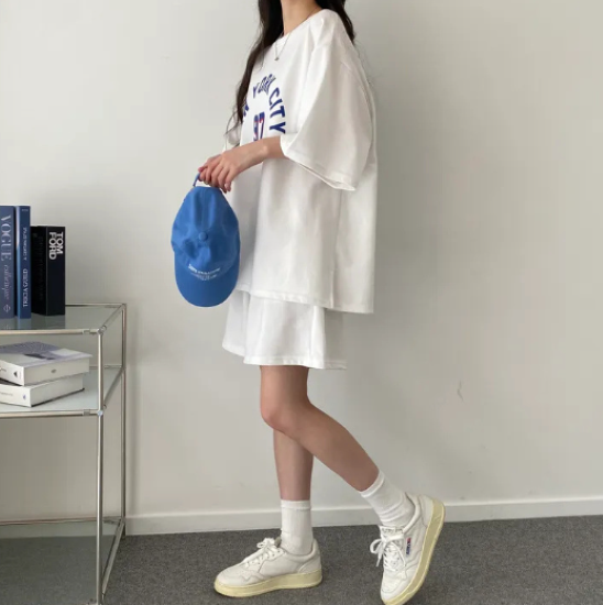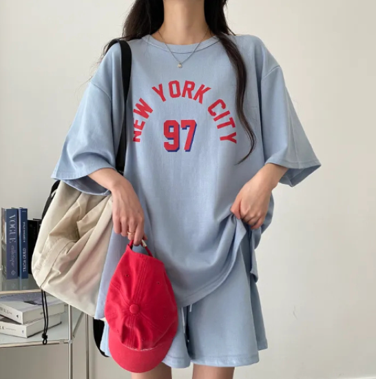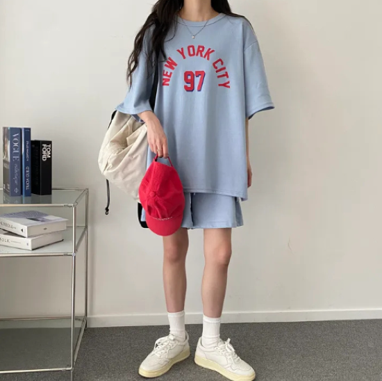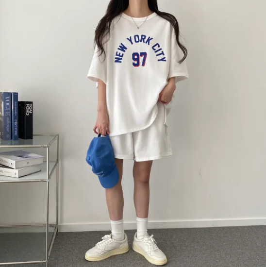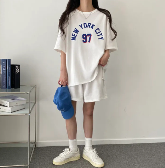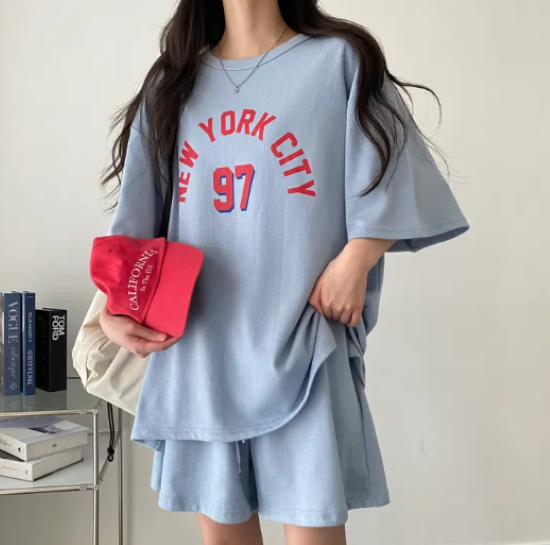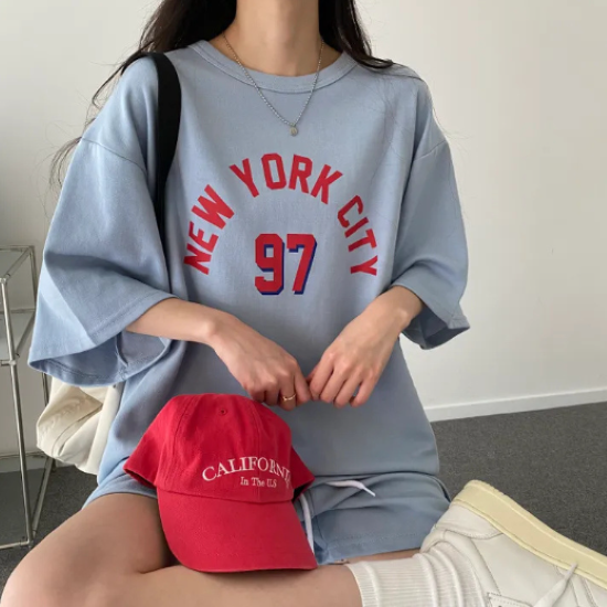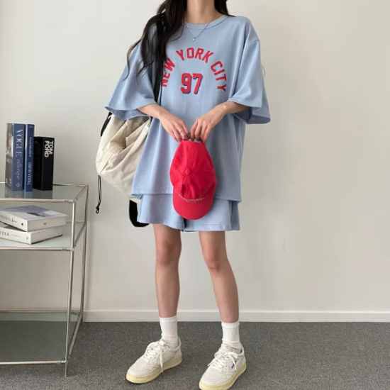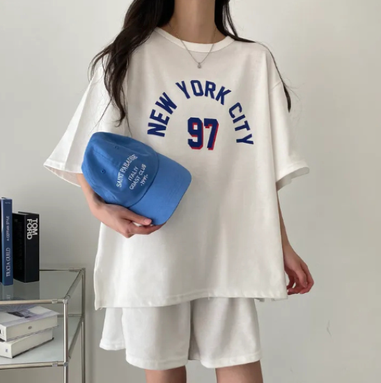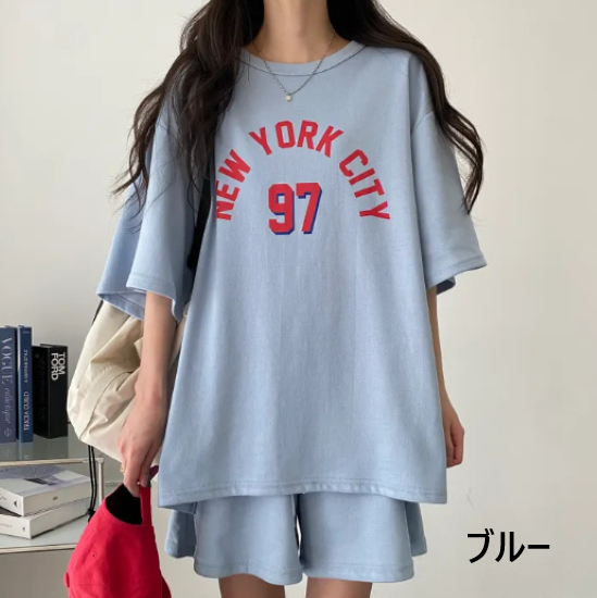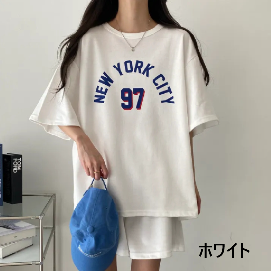 セットアップ レディース 上下セット 2点セット ツーピース Tシャツ ショートパンツ 半袖 ラウンドネック ゆったり プルオーバー ロゴプリント ルームウェア スポーティー リラックス カジュアル