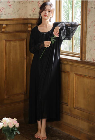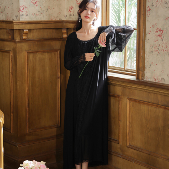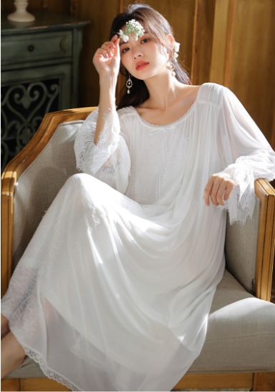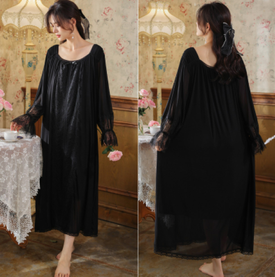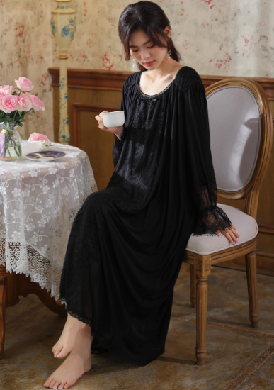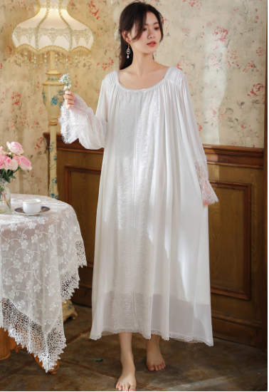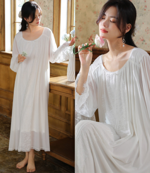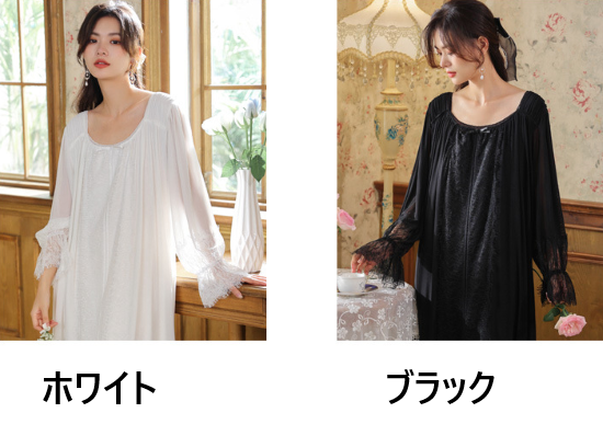 ルームウェア レディース ルームワンピース ネグリジェ パジャマ 長袖 ラウンドネック リボン レース フェミニン ゆったり リラックス ナイトドレス 体型カバー ホームウェア おうち服 室内着