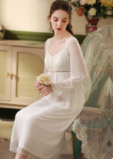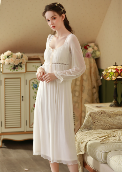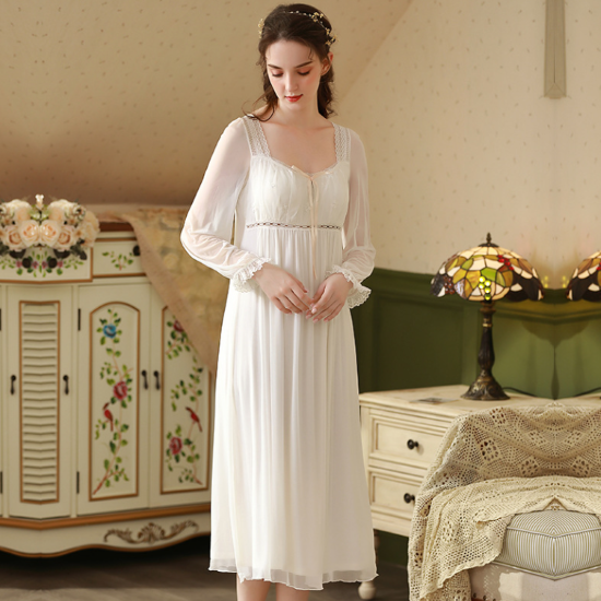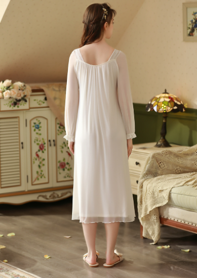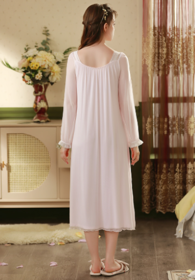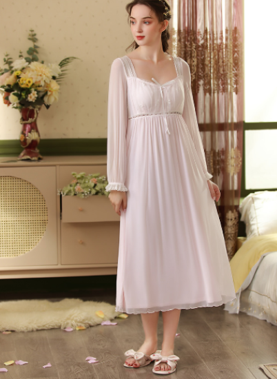 ルームウェア レディース ルームワンピース パジャマ ネグリジェ ロングワンピース 長袖 リボン ギャザー 袖口フリル ハイウエスト フェミニン 体型カバー リラックス ホームウェア ナイトウェア