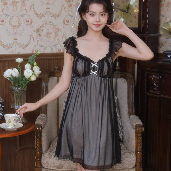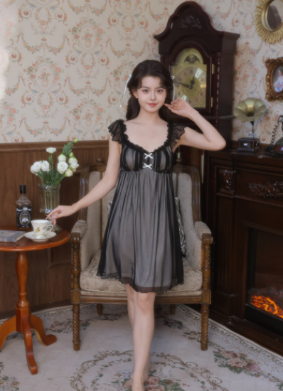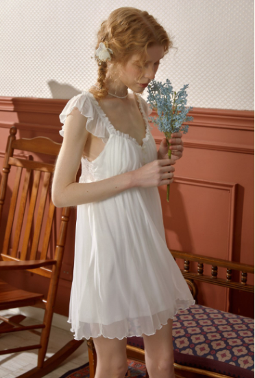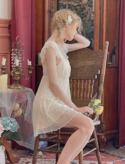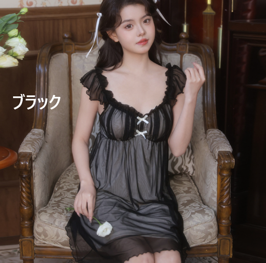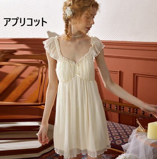 ルームウェア レディース ルームワンピース ネグリジェ パジャマ ベビードール フリル ギャザー 膝上丈 ショート丈 フェミニン キュート 可愛い リラックス ホームウェア ナイトウェア おうち服