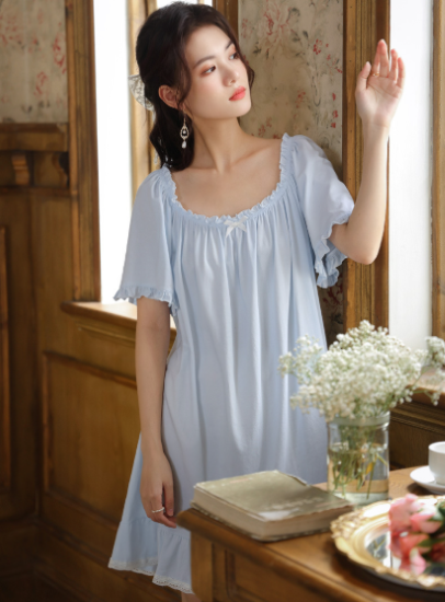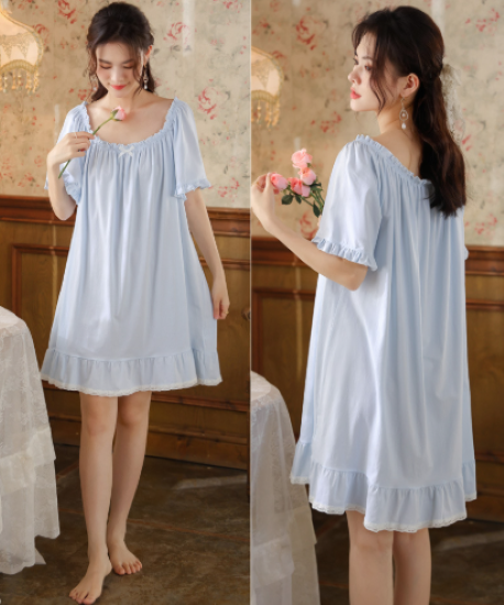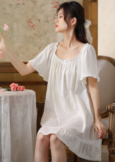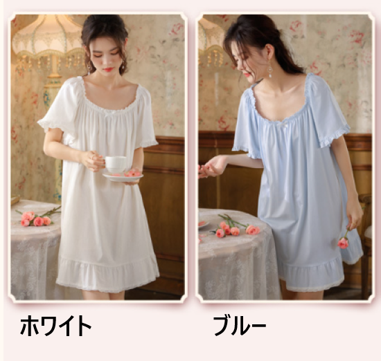 ルームウェア レディース ルームワンピース ネグリジェ パジャマ ホームウェア ナイトドレス 膝丈ワンピース フリル ギャザー シンプル 無地 フェミニン 半袖 ゆったり リラックス おうち服 女性