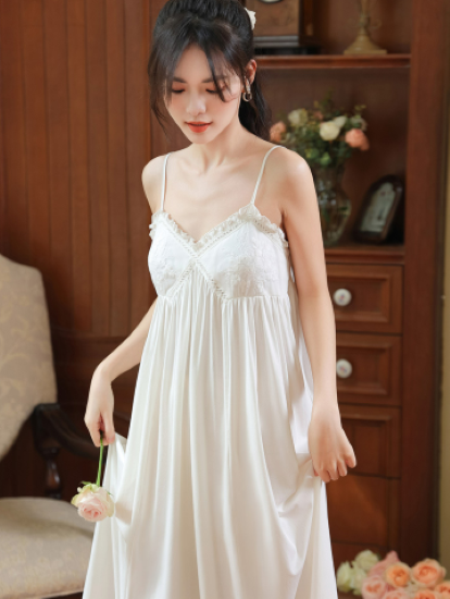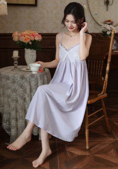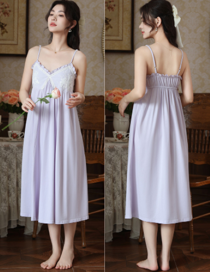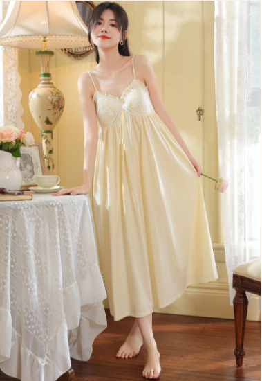 ルームウェア レディース ルームワンピース ネグリジェ パジャマ キャミソールワンピース フリル 刺繍 フェミニン きれいめ エレガント ロング丈 リラックス ホームウェア ナイトドレス おうち服