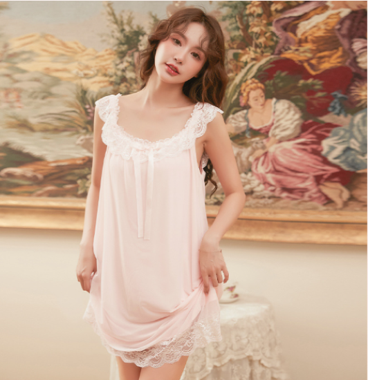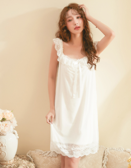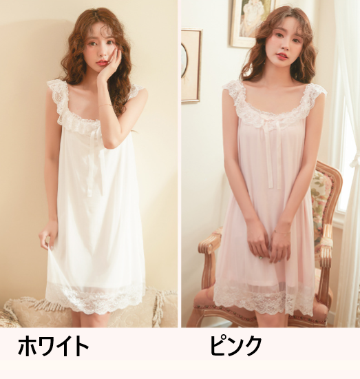 ルームウェア レディース ルームワンピース ネグリジェ パジャマ ノースリーブ レース フリル リボン フェミニン エレガント リラックス おうち服 ホームウェア ナイトドレス 部屋着 室内着 女性