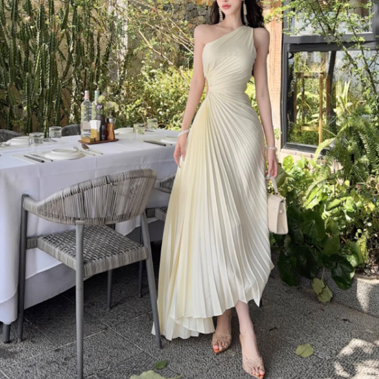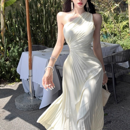 パーティードレス レディース 結婚式ドレス 演奏会ドレス ワンピースドレス プリーツスカート ワンショルダー ギャザー ドレープ カットアウト セクシー お呼ばれ フォーマル 白 ホワイト 女性