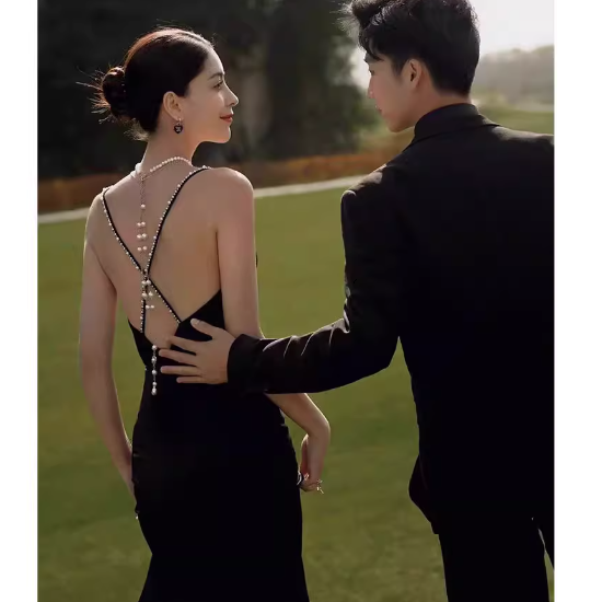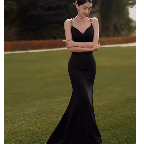 結婚式ドレス パーティー レディースファッション ワンピースドレス マーメイドドレス ロングドレス タイトドレス ノースリーブ パール装飾 バッククロス 美シルエット 体型カバー 綺麗 韓国風 20代