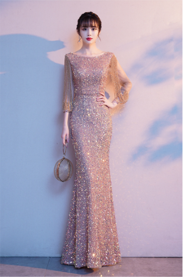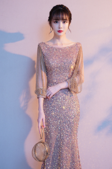 演奏会ドレス レディース 結婚式ドレス 演奏会ドレス ロングドレス ワンピースドレス 七分袖 きらきら ラメ スパンコール 背中開き セクシー きれいめ エレガント お呼ばれ フォーマル 華やか