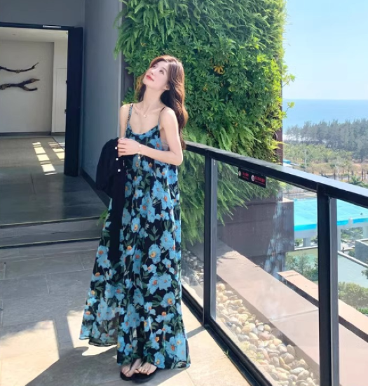 ロングワンピース レディース リゾートワンピース キャミソールワンピース マキシ丈 花柄 フラワー フローラル プリント カジュアル きれいめ エレガント お出かけ おしゃれ バカンス ファッション