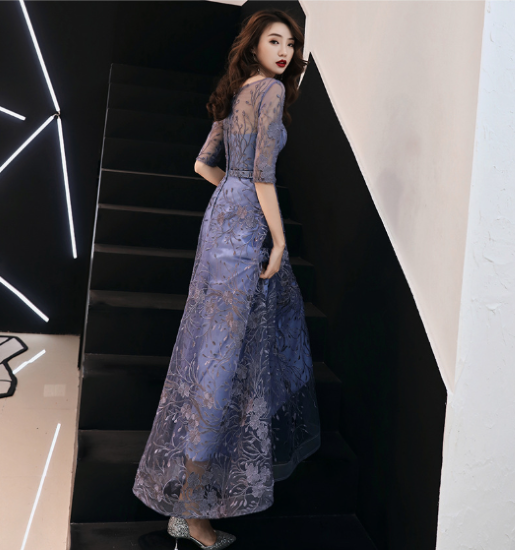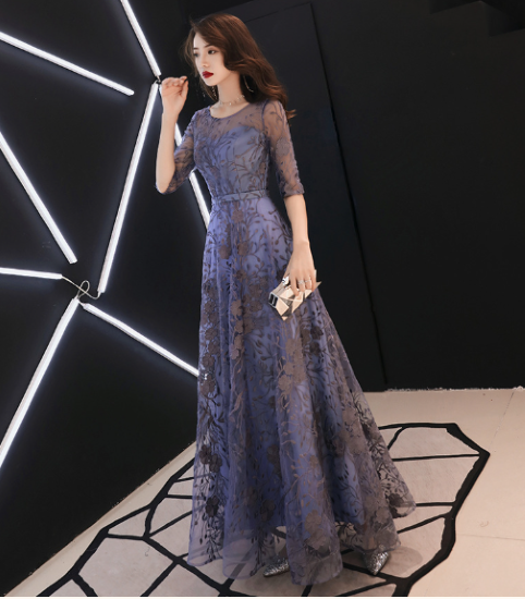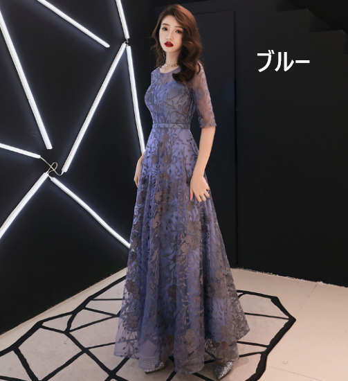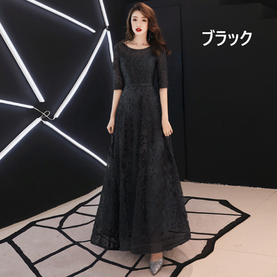 演奏会ドレス レディース 結婚式ドレス パーティードレス ロングドレス ワンピースドレス ラウンドネック 五分袖 ハイウエスト きれいめ エレガント レース 上品 大人っぽい きれいめ エレガント