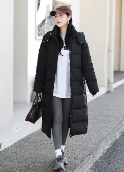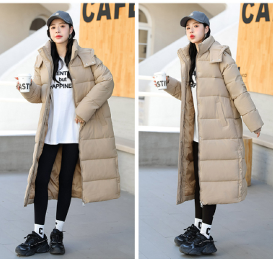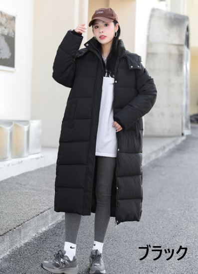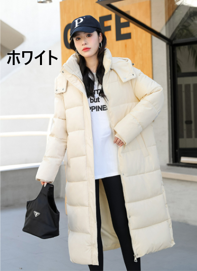 ロングコート レディース アウター 羽織 ダウンコート 長袖 防寒 防風 冬 シンプル 無地 スタンドカラー フード付き フロントジッパー 暖かい カジュアル お出かけ おしゃれ アウトドア 女性