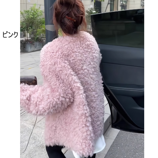 ノーカラージャケット レディースファッション アウター もこもこジャケット ミドル丈ジャケット ベーシックカラー 大人可愛い カジュアルスタイル ダボっと感 体型カバー 綺麗め 高級感 韓国風 20代