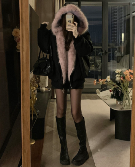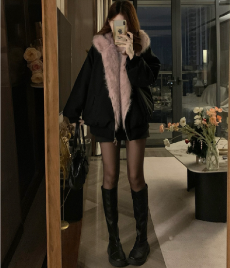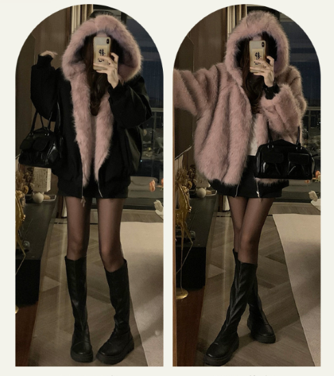 ジャケット レディース アウター 羽織 上着 リバーシブル 長袖 フード付き ファー ふわふわ 暖かい 防寒 防風 冬 厚手 バイカラー コントラストカラー カジュアル お出かけ おしゃれ 女性