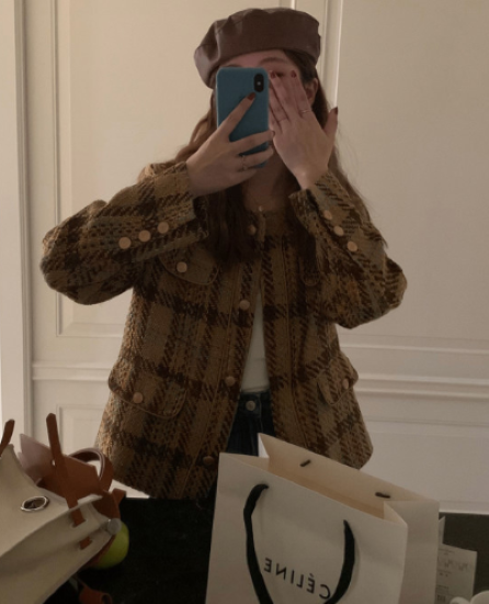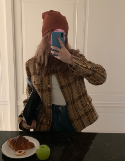 ジャケット レディース アウター 羽織 上着 長袖 ノーカラー チェック柄 レトロ フロントボタン ツイードジャケット カジュアル お出かけ おしゃれ きれいめ 大人っぽい 女性 ファッション 格子柄