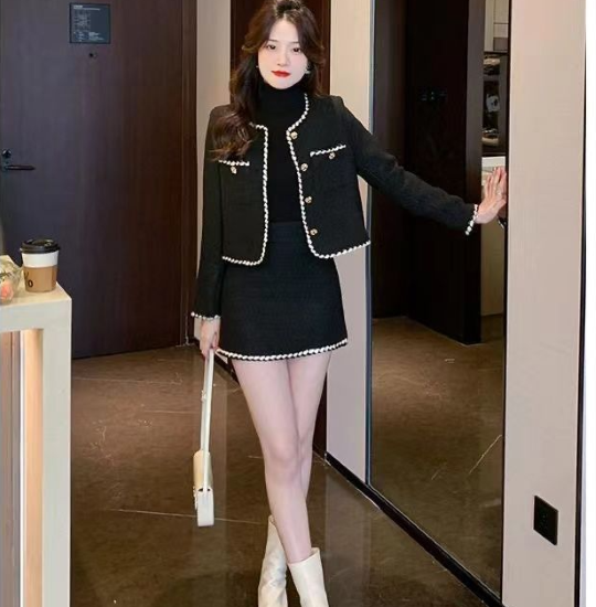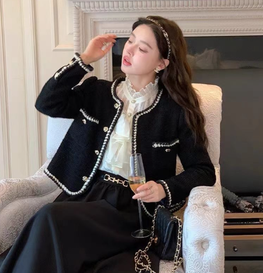 ジャケット レディース アウター 羽織 上着 長袖 ノーカラー フロントボタン 黒 ブラック パイピング コントラストカラー バイカラー カジュアル お出かけ おしゃれ きれいめ エレガント 女性