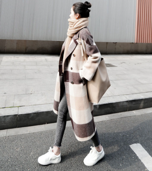 コート レディース アウター 羽織 上着 ロング丈 ダブルブレスト 襟あり スーツ襟 長袖 チェック柄 格子柄 カシミア カジュアル お出かけ おしゃれ きれいめ 女性 ファッション 防寒 暖かい