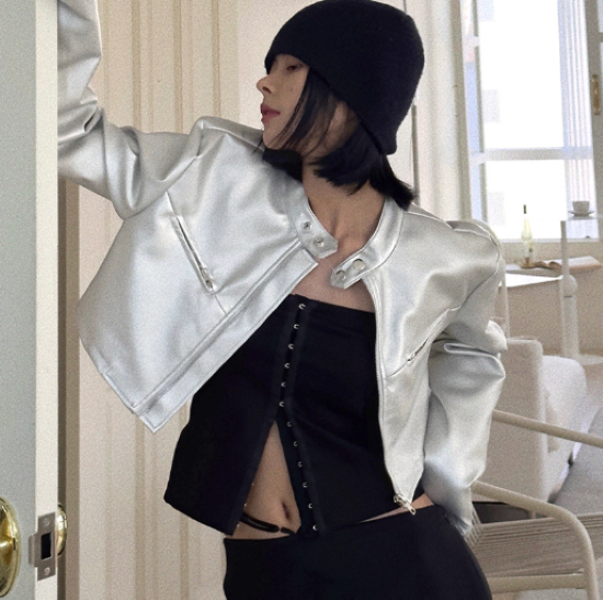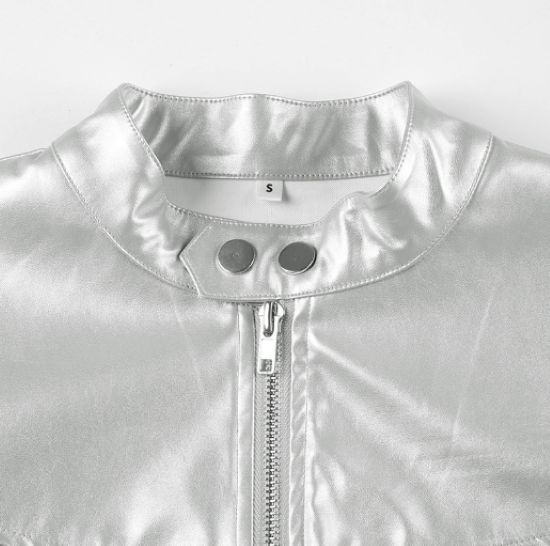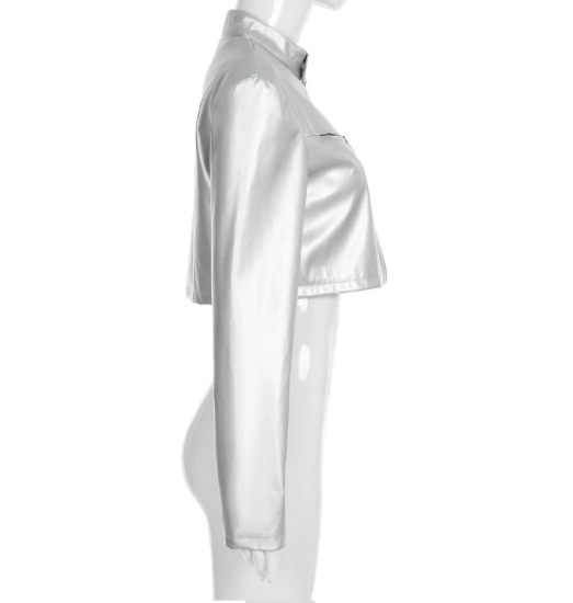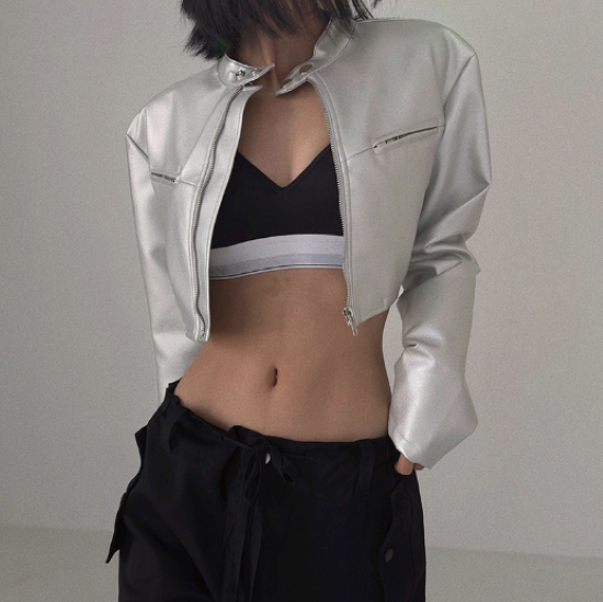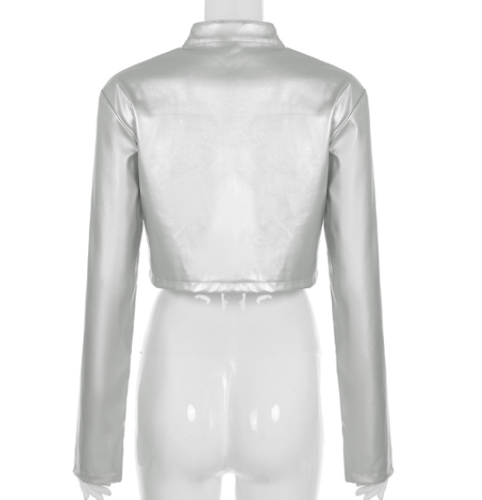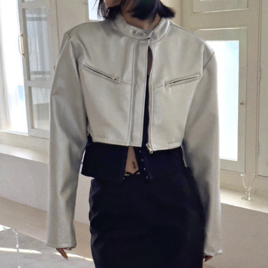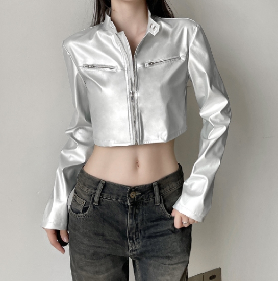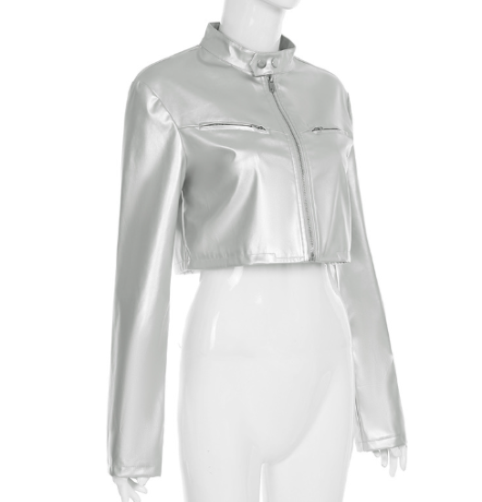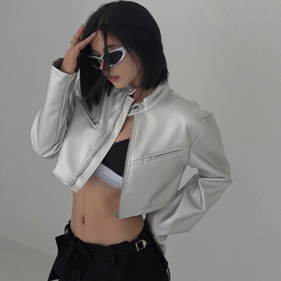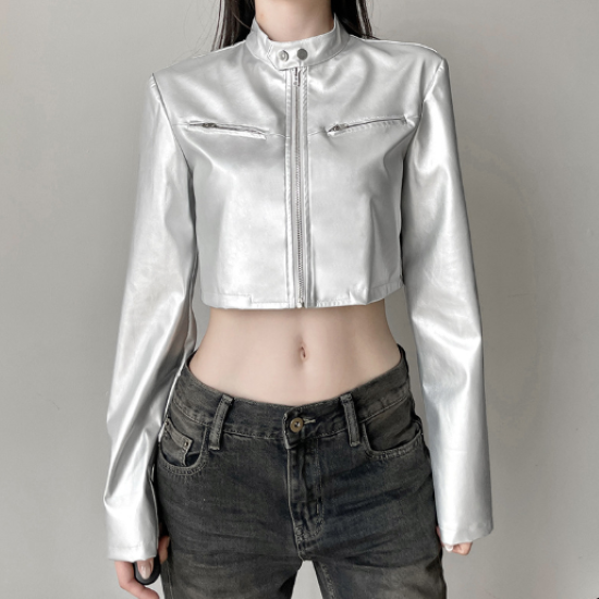 ジャケット レディース アウター 羽織 上着 長袖 ショート丈 クロップド丈 PUレザー クール かっこいい スタイリッシュ フロントジッパー スタイルアップ カジュアル お出かけ おしゃれ 女性